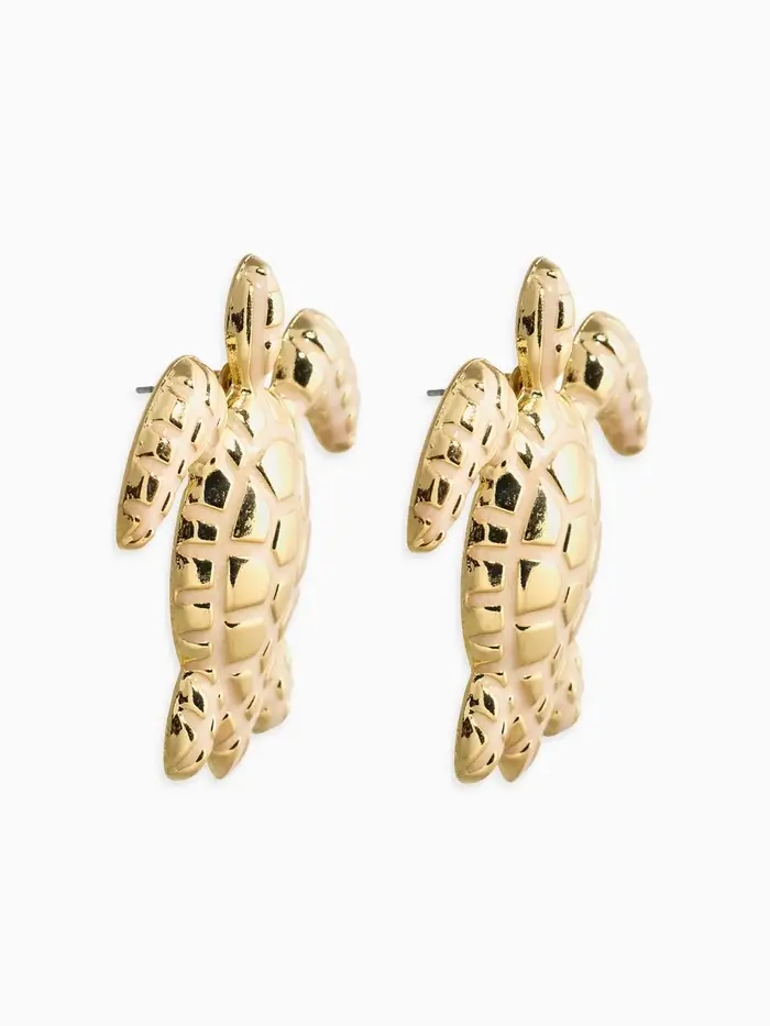 Серьги "Морской мир", черепаха, цвет белый в золоте