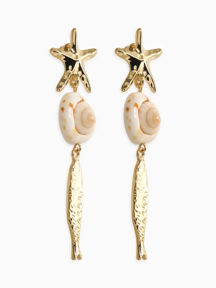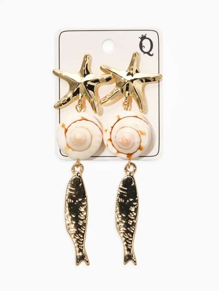 Серьги "Морской мир", рыбки с ракушкой, цвет белый в золоте