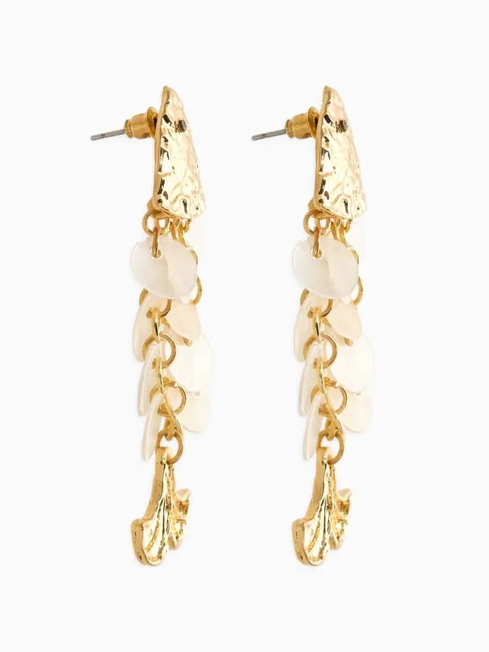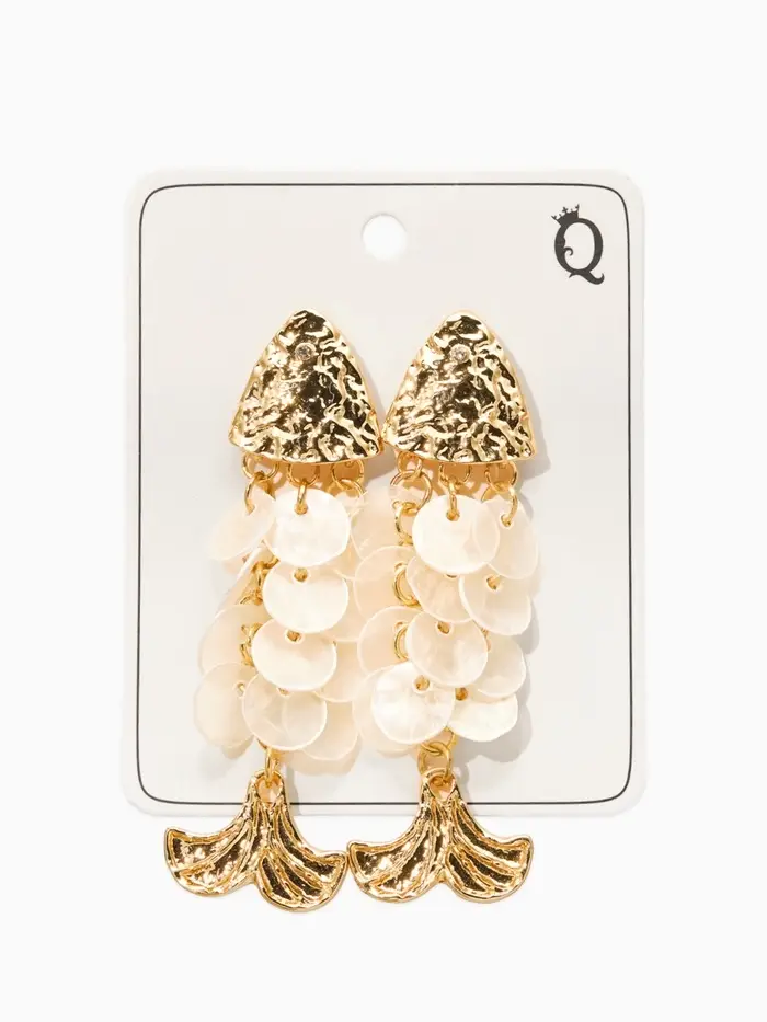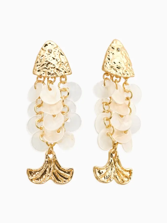 Серьги "Морской мир" чешуя рыбки, цвет белый в золоте