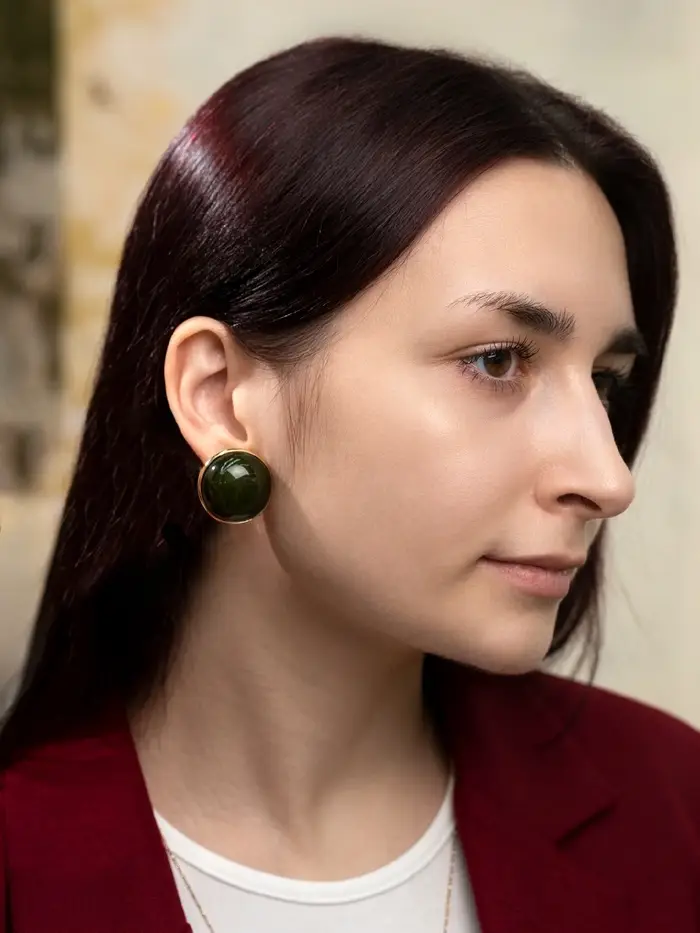 Изящное исполнение и насыщенный зелёный цвет делают эти круглые серьги из акрила настоящим акцентом в любом образе. Золотистая фурнитура мягко подчёркивает глубину оттенка, создавая эффект изысканного камня, который привносит свежесть и природную энергетику в ваш стиль.