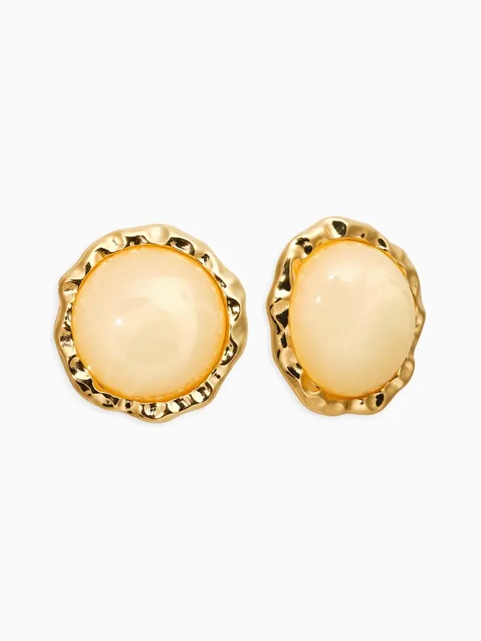 Серьги акрил "Стиль", круг в рамке, цвет бежевый в золоте