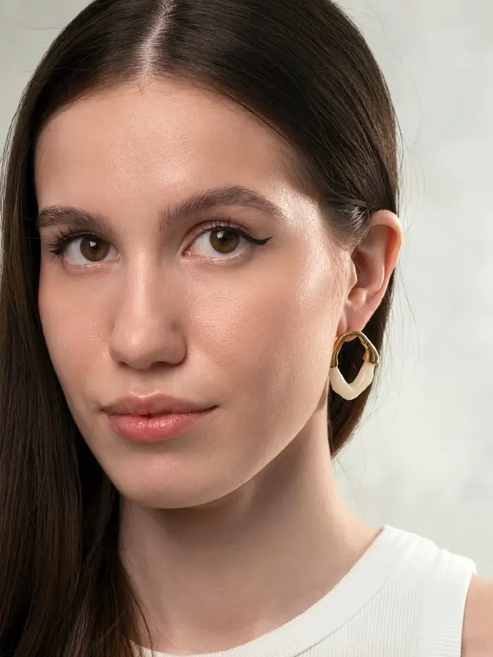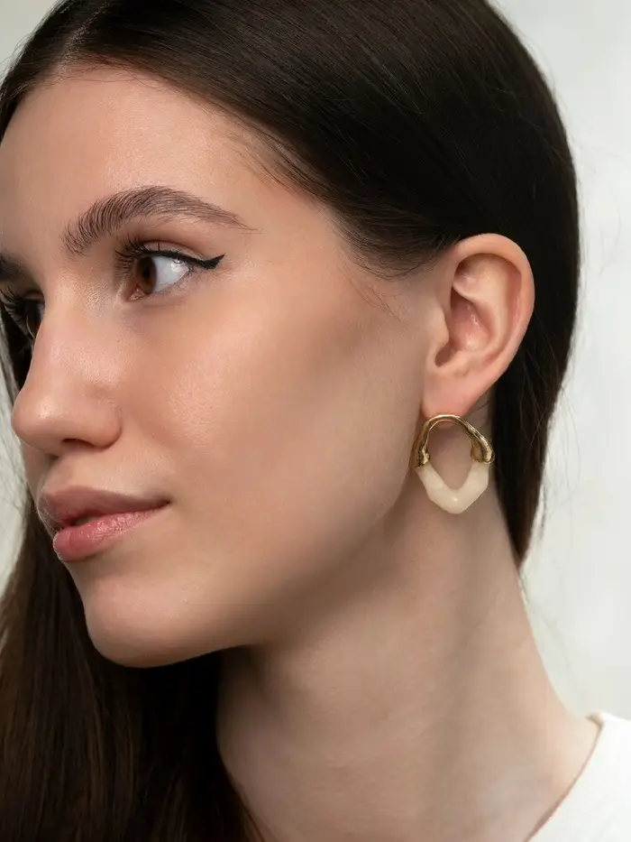 Эти серьги, вдохновлённые природным очарованием сталактитов, выделяются нежным молочным оттенком в сочетании с элегантным золотистым блеском фурнитуры. Длина 3,5 см придаёт украшению выразительность, сохраняя лёгкость и изящество образа.