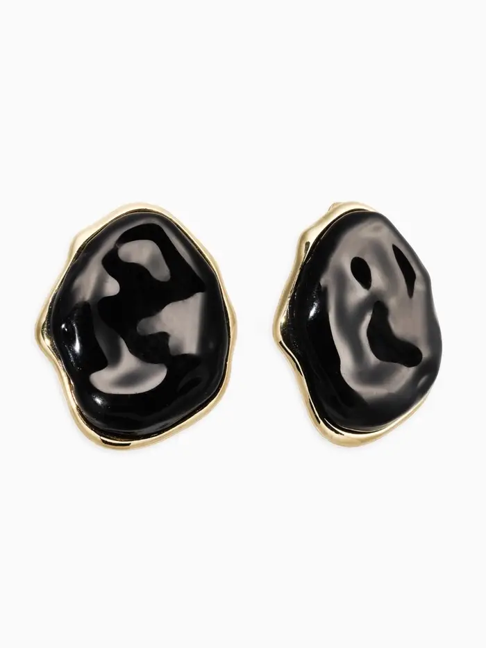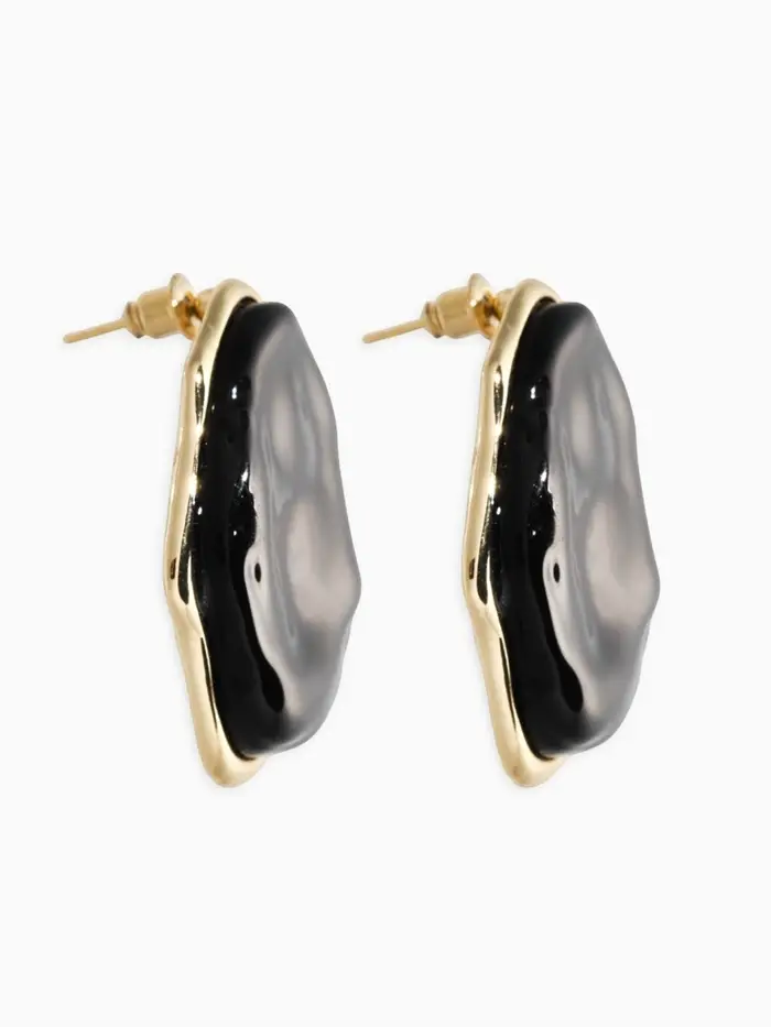 Серьги акрил мятый "Овал", цвет чёрный в золоте