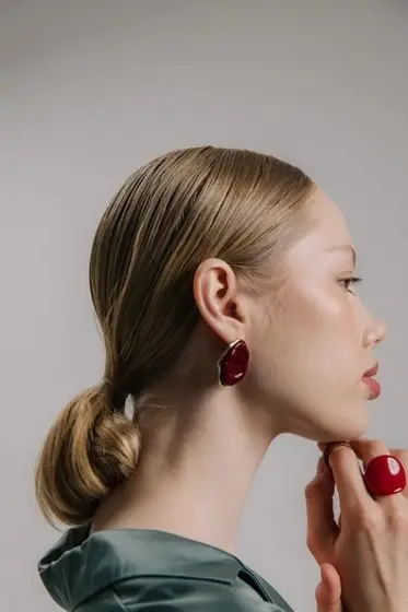 - Элегантный дизайн: мятые овальные акриловые вставки насыщенного бордового цвета добавляют яркости и индивидуальности.