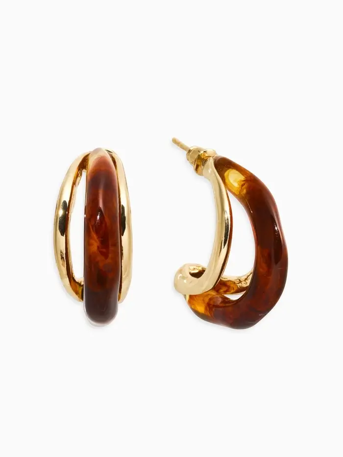 Серьги акрил "Стиль" полукольцо, цвет светло-кричневый в золоте