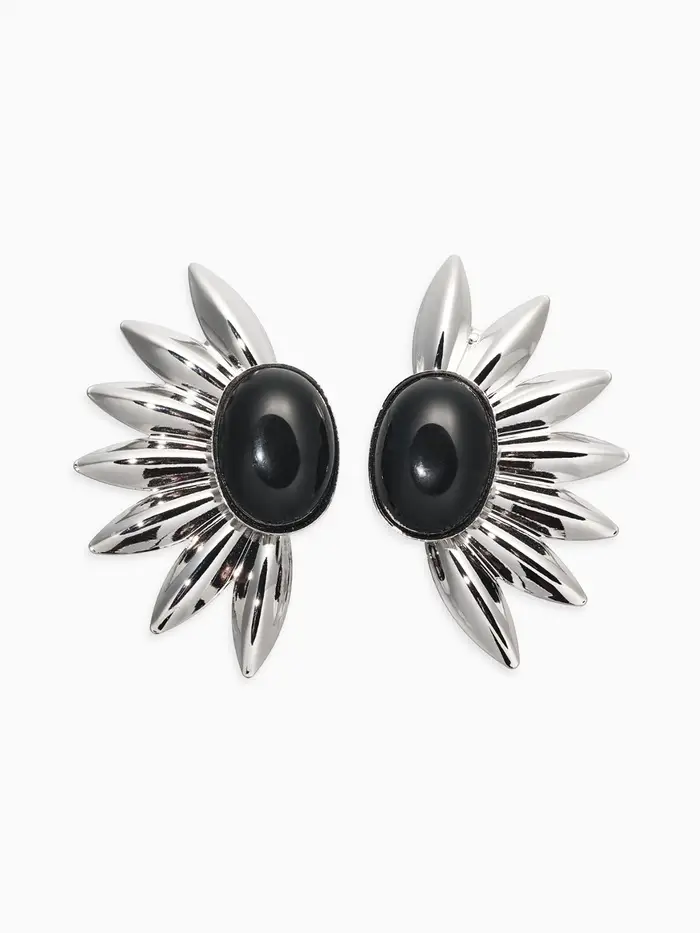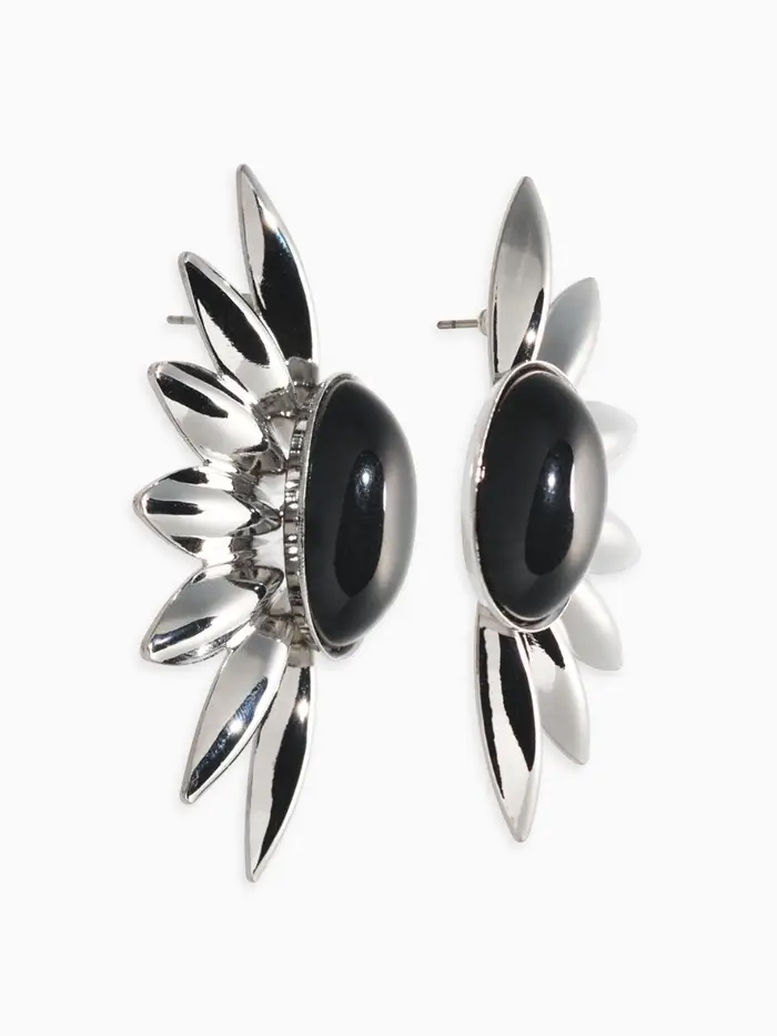 Серьги "Полусолнце", цвет чёрный в серебре