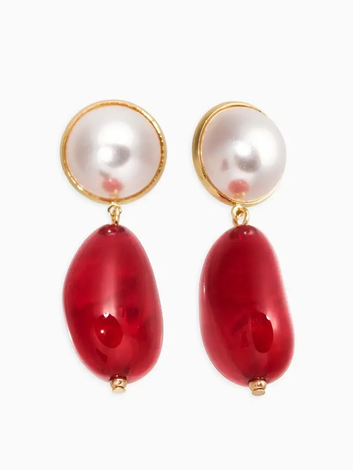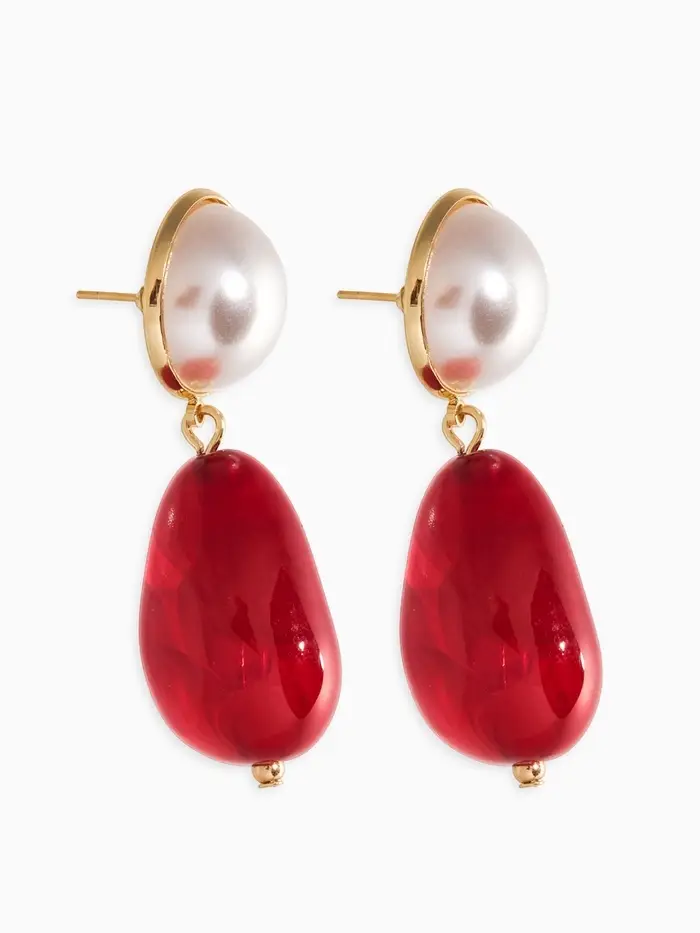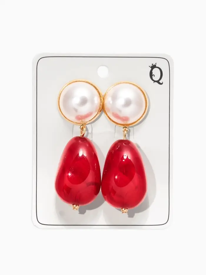 Серьги акрил с жемчугом "Капля", цвет бордово-белый в золоте
