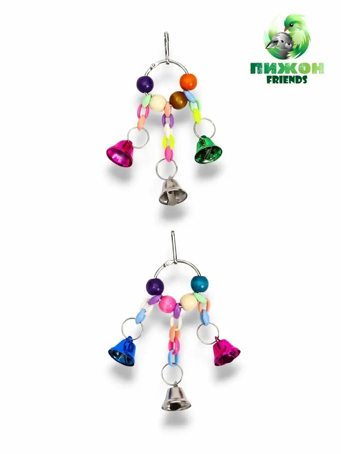 Игрушка для птиц "Кольцо" с колокольчиками, 13,5 х 5 см, микс цветов
