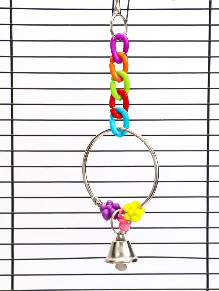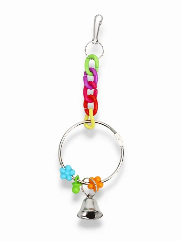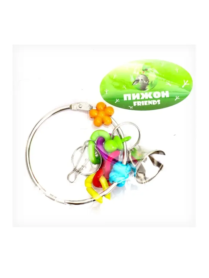 Игрушка для птиц "Кольцо и бусы" с колокольчиками, 20 х 7 см, микс цветов