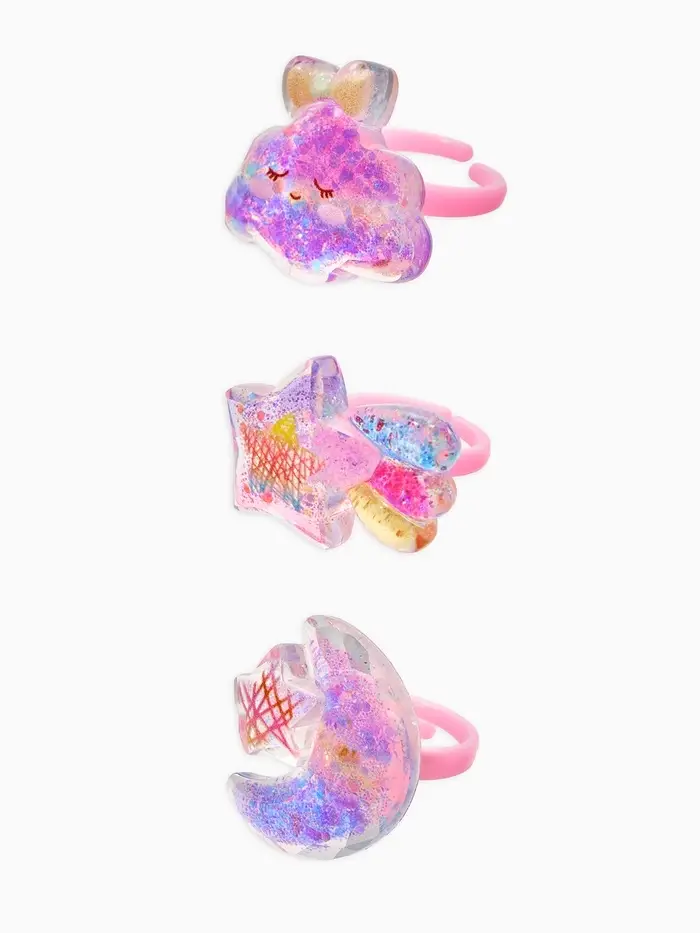 Набор детских колец "Выбражулька" звездочка с блестками, 3 шт. разноцветные