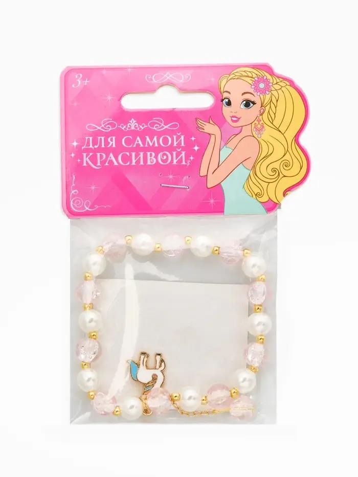 Браслет детский «Выбражулька» единорог, цвет бело-розовый в золоте