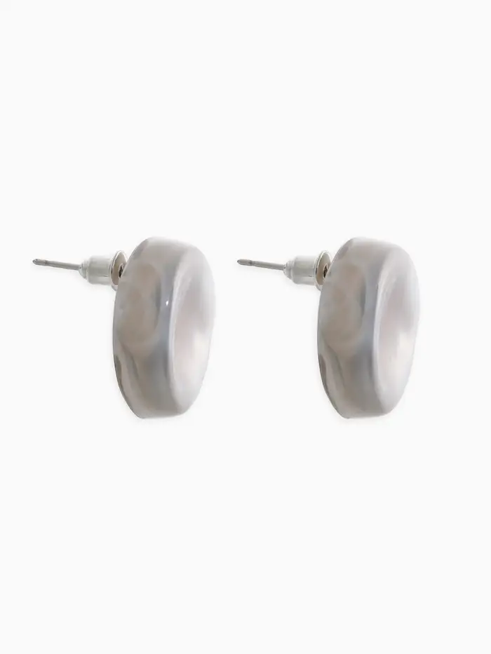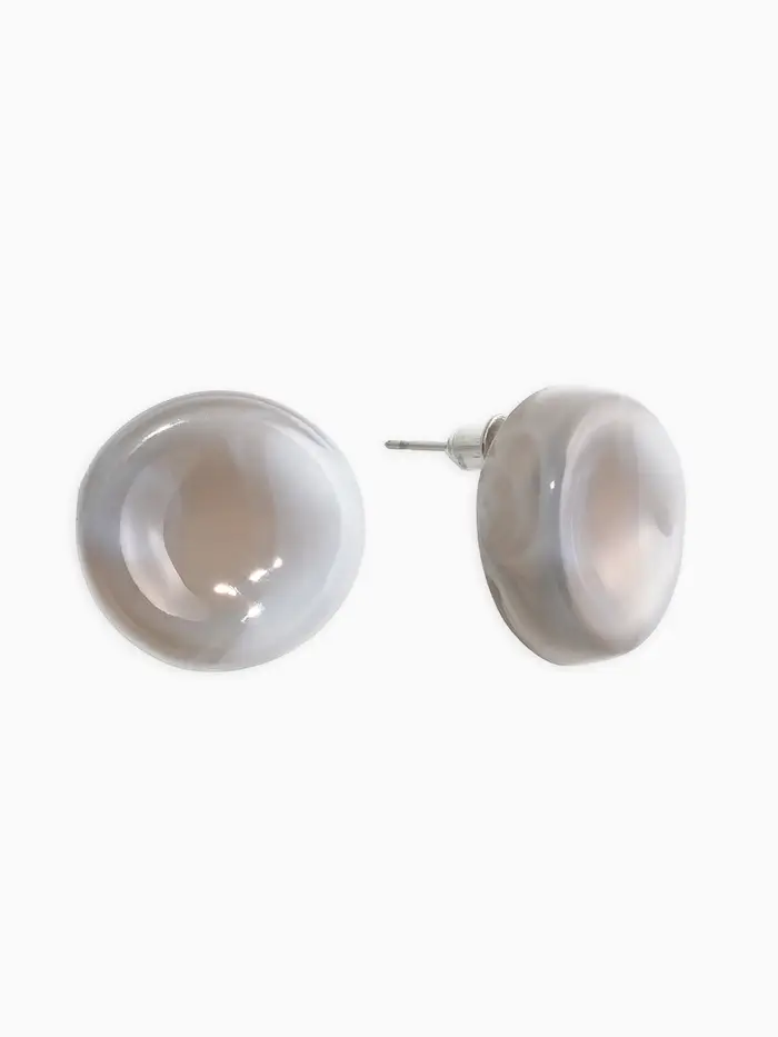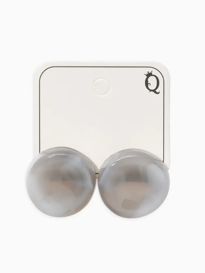 Серьги пластик "Леденец" круг 2 см с разводами белыми, цвет серый