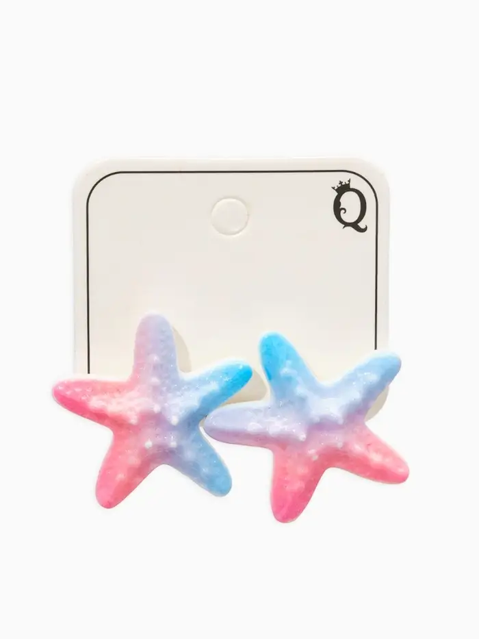 Серьги пластик "Морская звезда", цвет розово-голубой