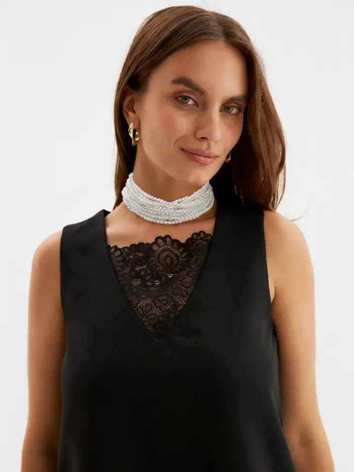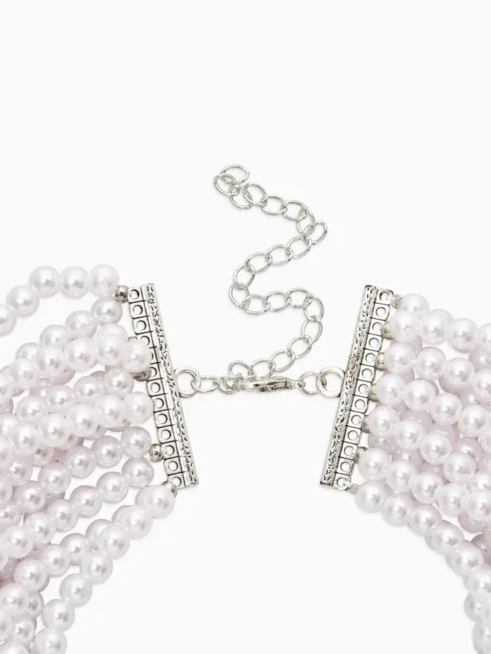 - 12 рядов жемчужных бусин: многослойный эффект создаёт глубину и визуальный интерес.