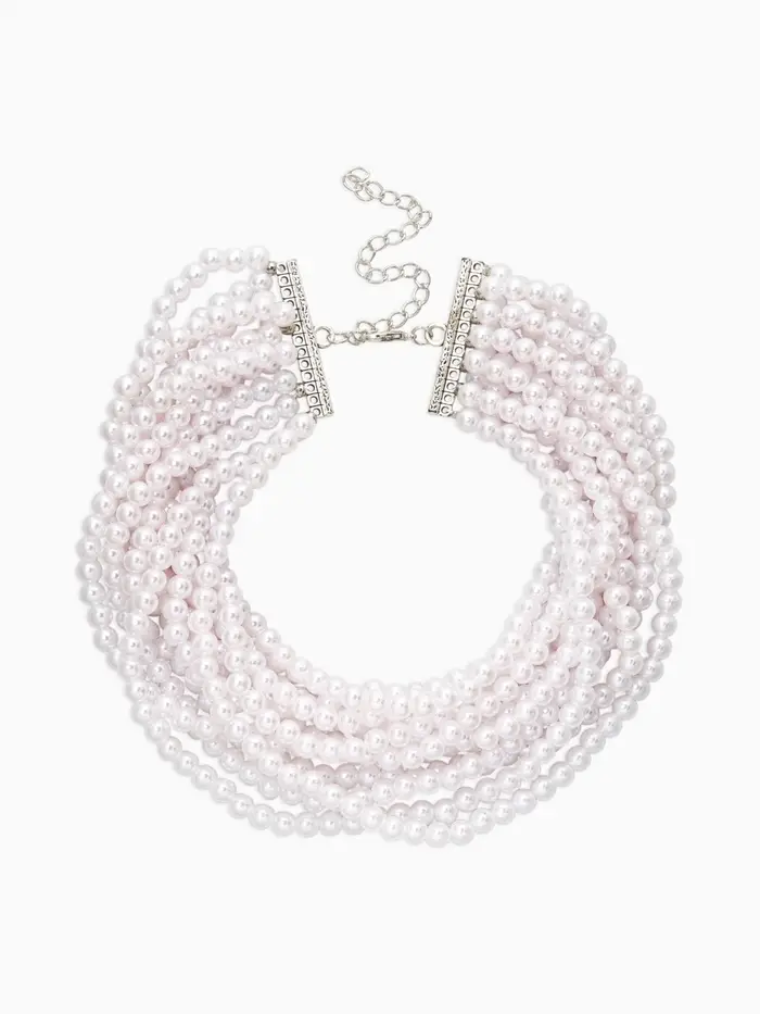 Чокер-бусы многослойный «Жемчужная императрица», 12 рядов, №6, L=30 см+10 см, белый в серебре