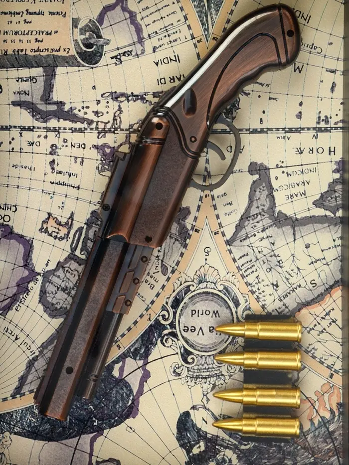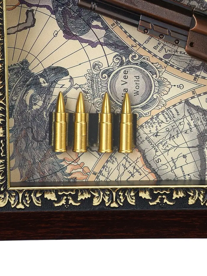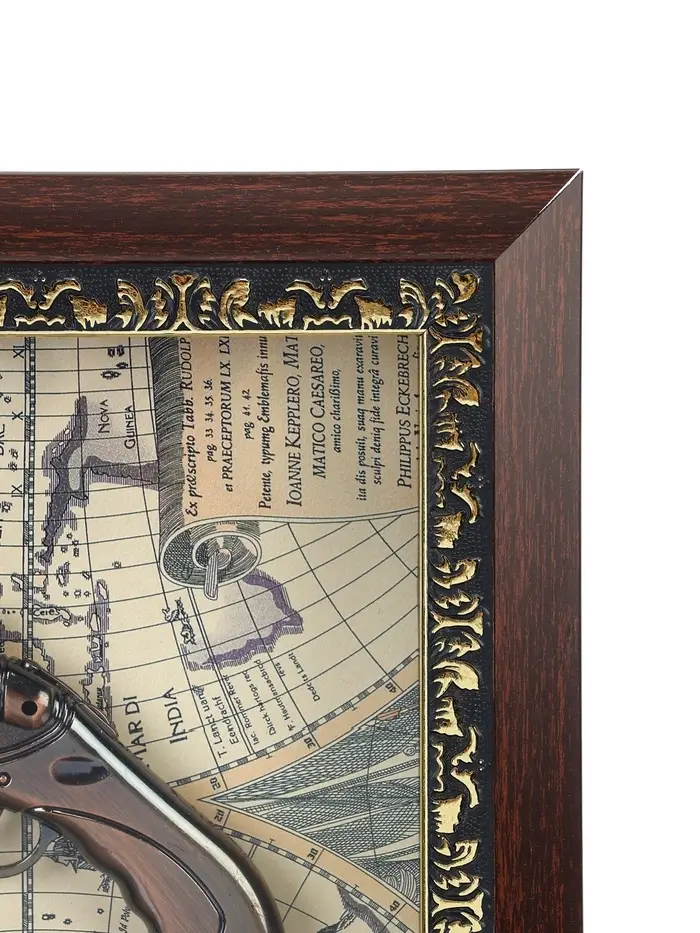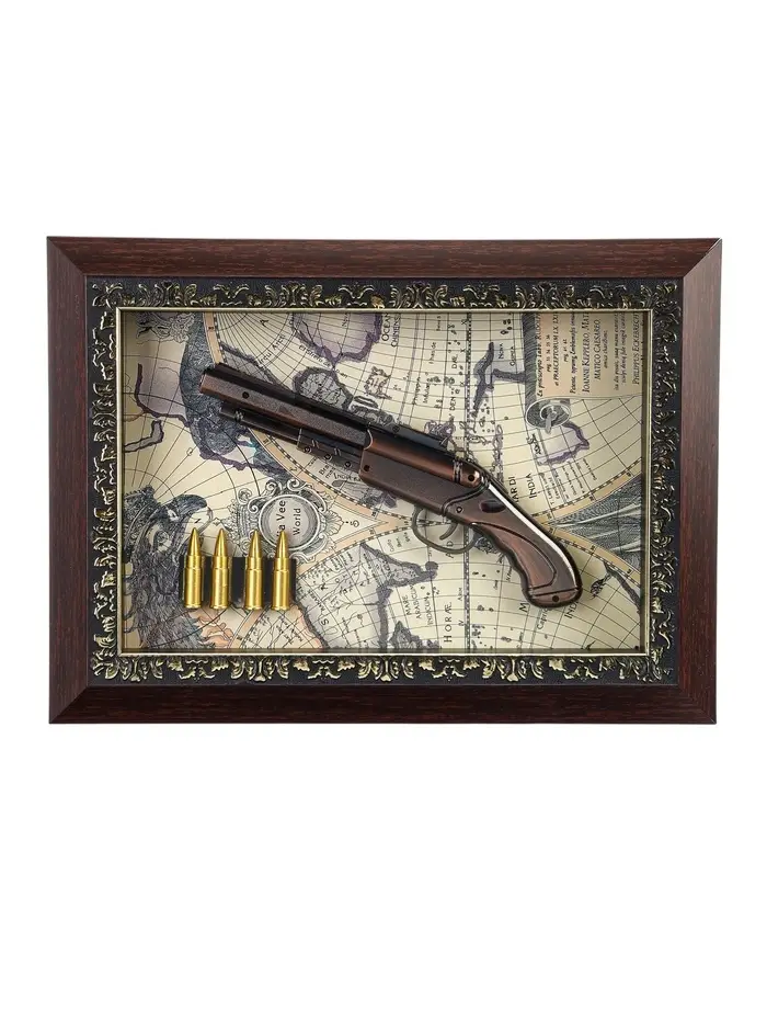 Сувенирное изделие - панно настенное в раме "Карта. Револьвер и 4 пули" 26х36х5 см