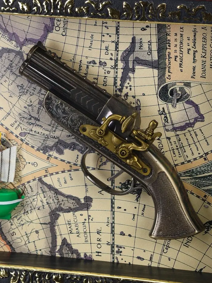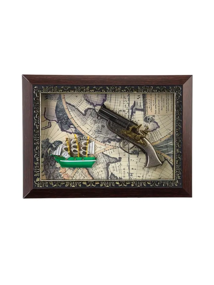 Сувенирное изделие - панно настенное в раме "Карта. Револьвер и корабль" 26х36х5 см