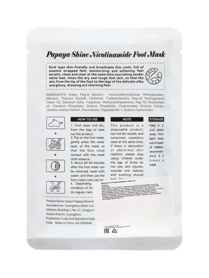 Маска предназначена для людей, которые заботятся о здоровье и красоте кожи ног, стремятся к мягкости и комфорту. Sadoer с папайей подходит для всех типов кожи и идеально подходит для регулярного ухода за ногами в домашних условиях.