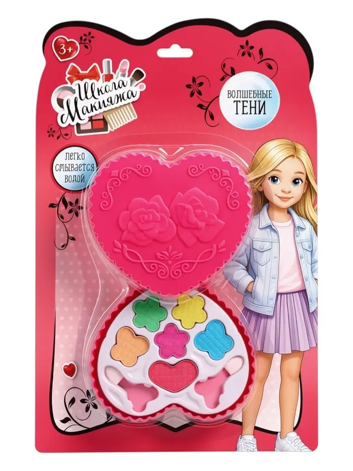 - Яркие и безопасные оттенки: тени специально разработаны для юной кожи, не вызывают раздражений и легко смываются.
