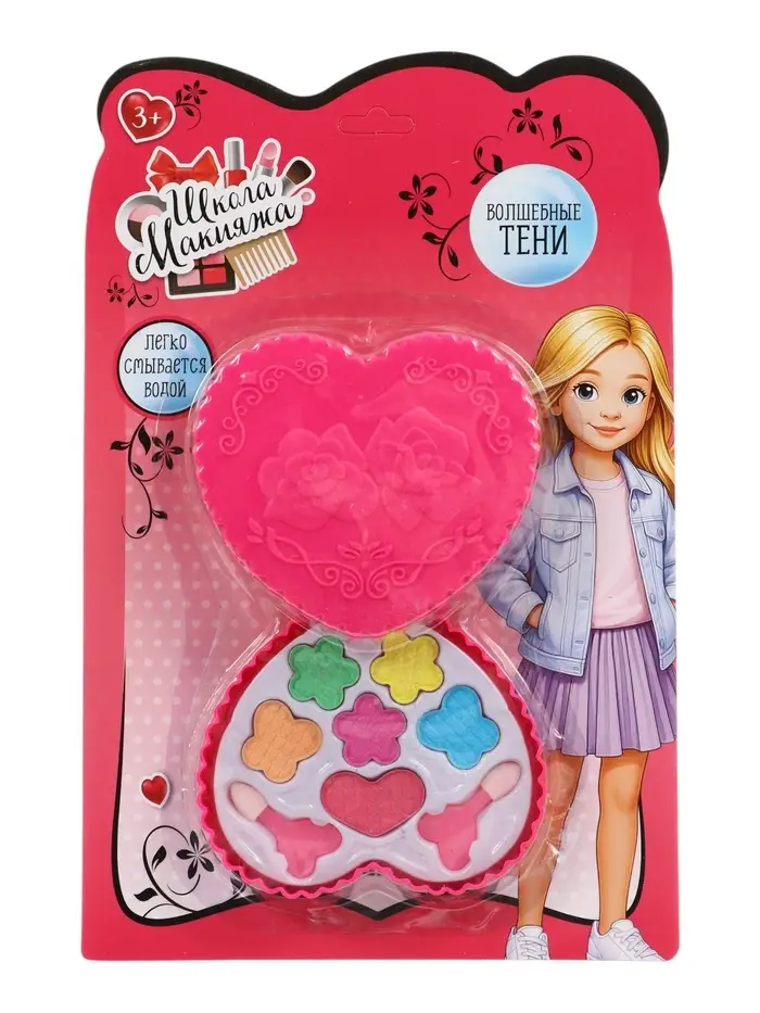 Набор косметики для девочки "Сердечко" тени 6 цв. по 1 гр + 2 аппликатора