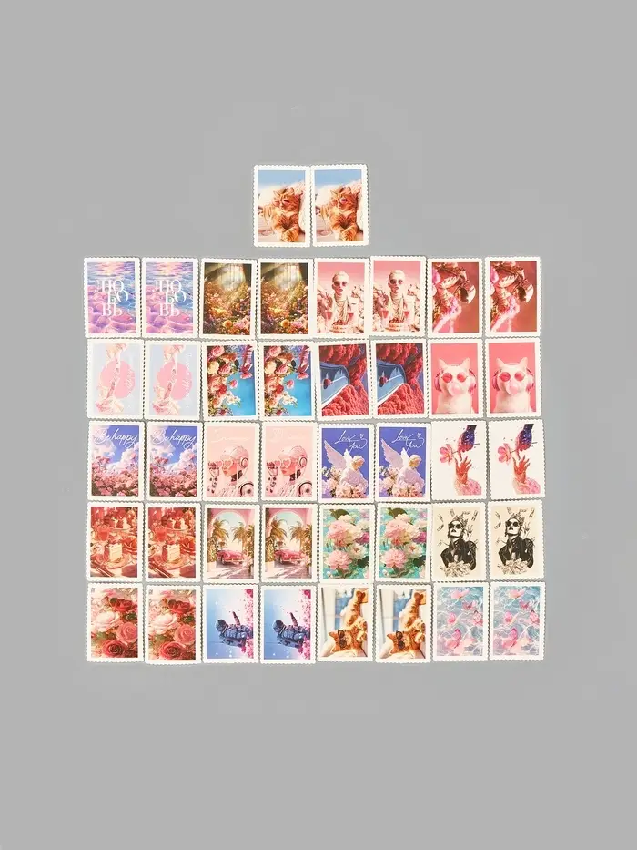Наклейки для подарков "Цветы", 42 штуки в коробке. 3 х 4 см