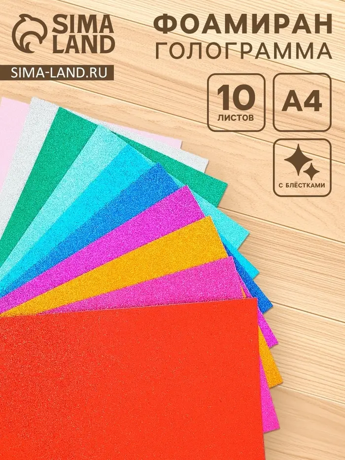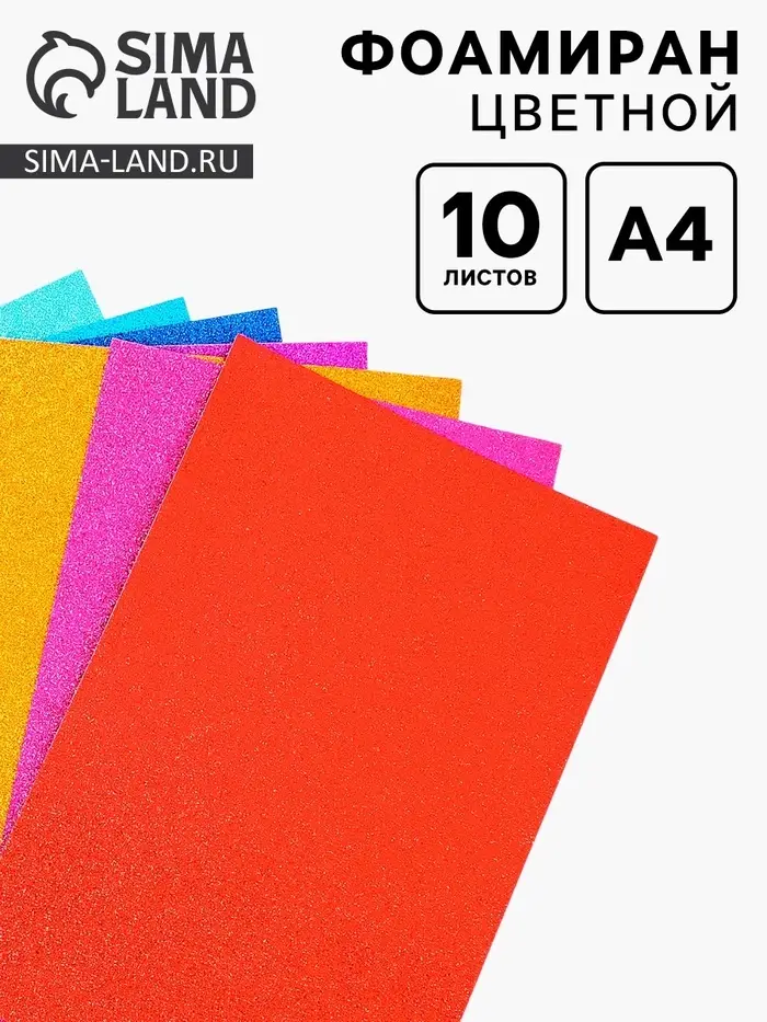Фоамиран цветной 2 мм, набор 10 шт,, формат А4