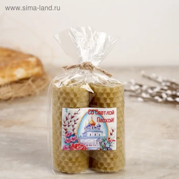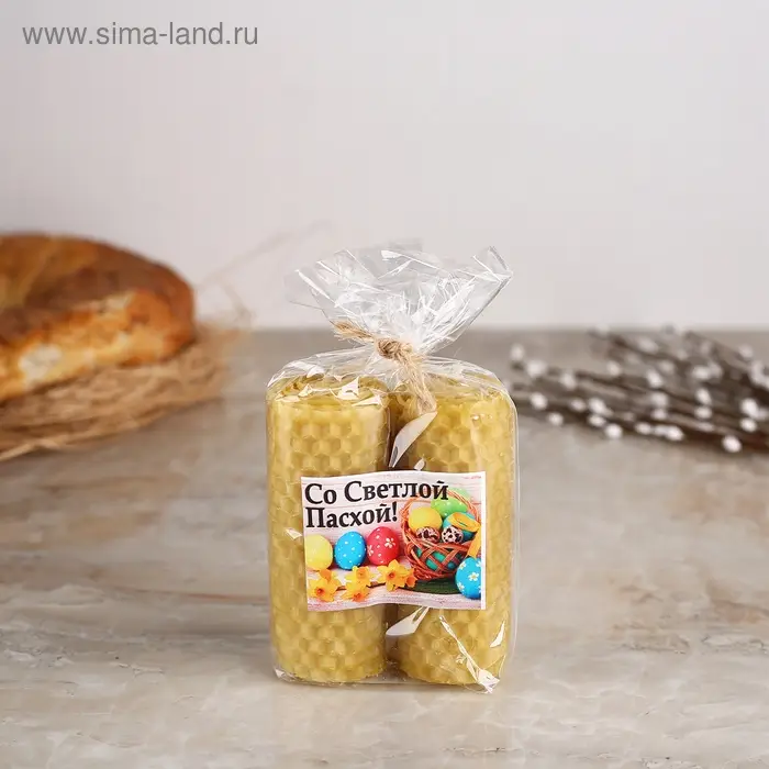Набор свечей из вощины медовой 8 см, 2шт "Со Светлой Пасхой" с эфирным маслом Эвкалипт, МИКС