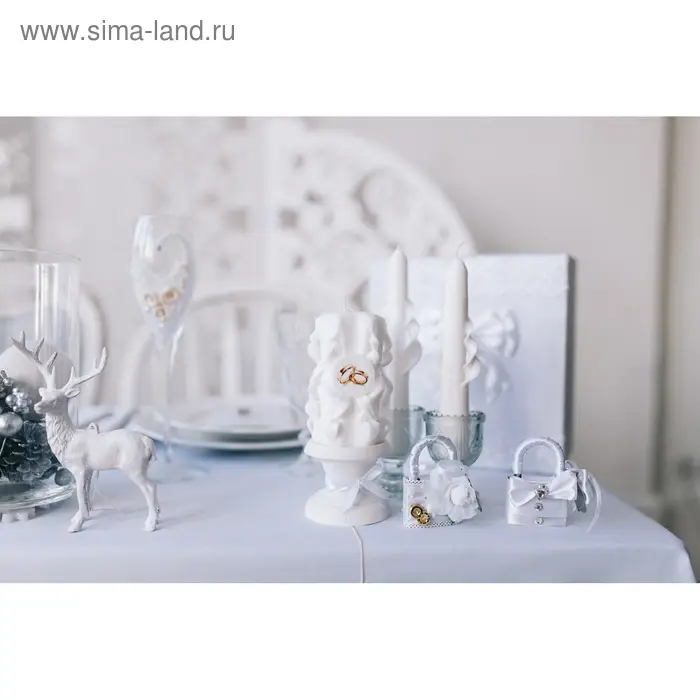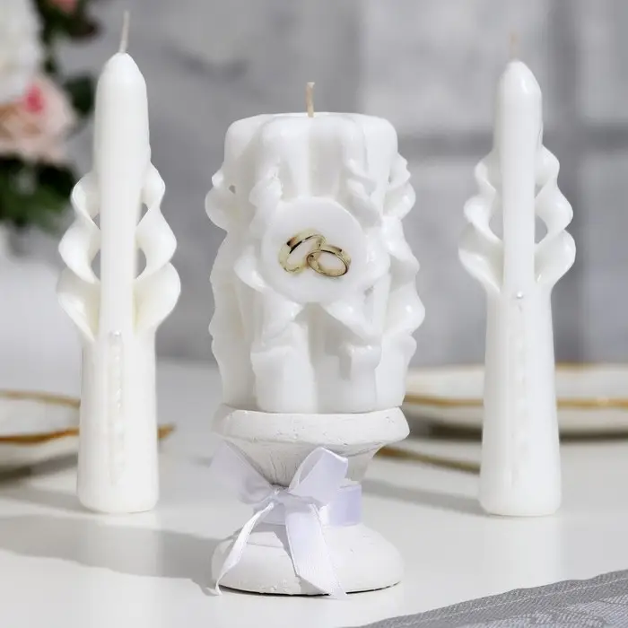 Набор свечей резных с подсвечником "Свадебный", белый: домашний очаг, родительские свечи
