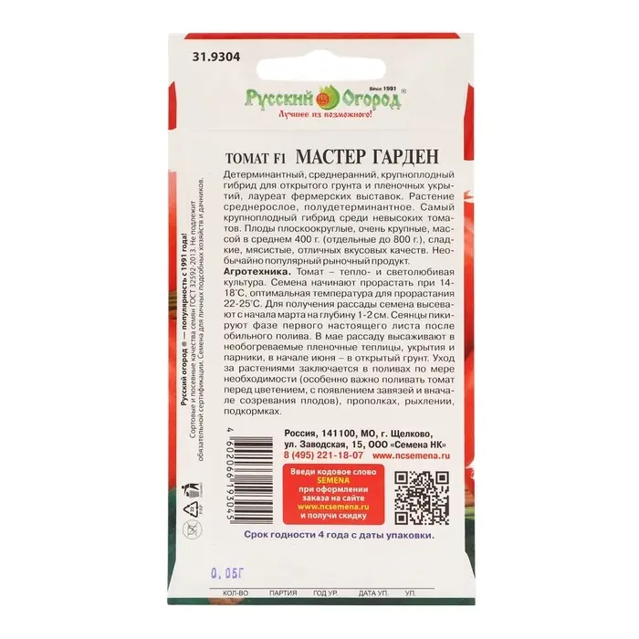 Семена имеют длительный срок годности – 4 года, что гарантирует их жизнеспособность и удобство хранения. При выращивании в теплицах необходимо обеспечить достаточную вентиляцию и умеренный полив, чтобы избежать излишней влажности и болезней. В открытом грунте растения лучше размещать на солнечных участках, обеспечивая защиту от ветра.