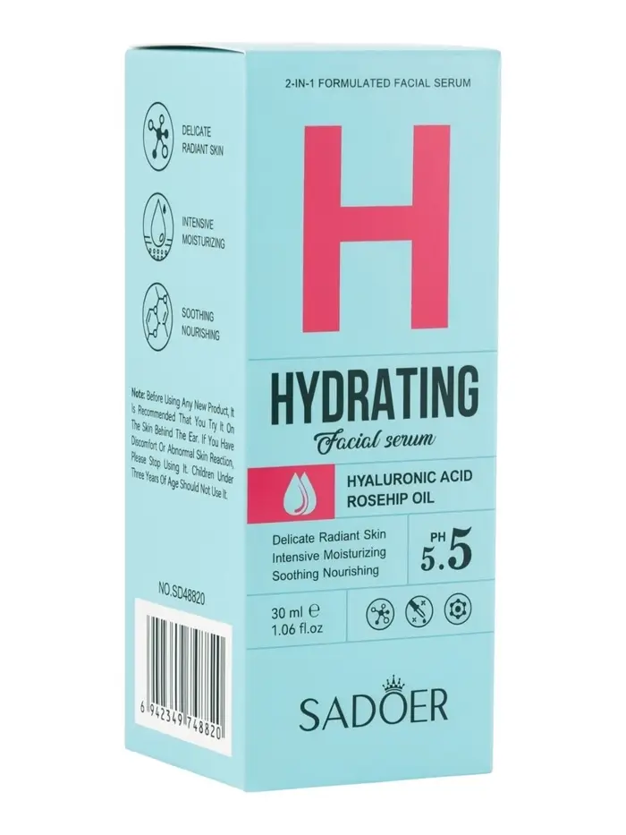 Откройте для своей кожи секрет сияния и увлажнённости с сывороткой Sadoer с гиалуроновой кислотой и экстрактом шиповника — идеальным средством для интенсивного ухода и восстановления кожи. Эта лёгкая, но питательная формула сочетает силу гиалуроновой кислоты с антивозрастными и защитными свойствами экстракта шиповника, обеспечивая коже здоровье, упругость и естественное сияние.