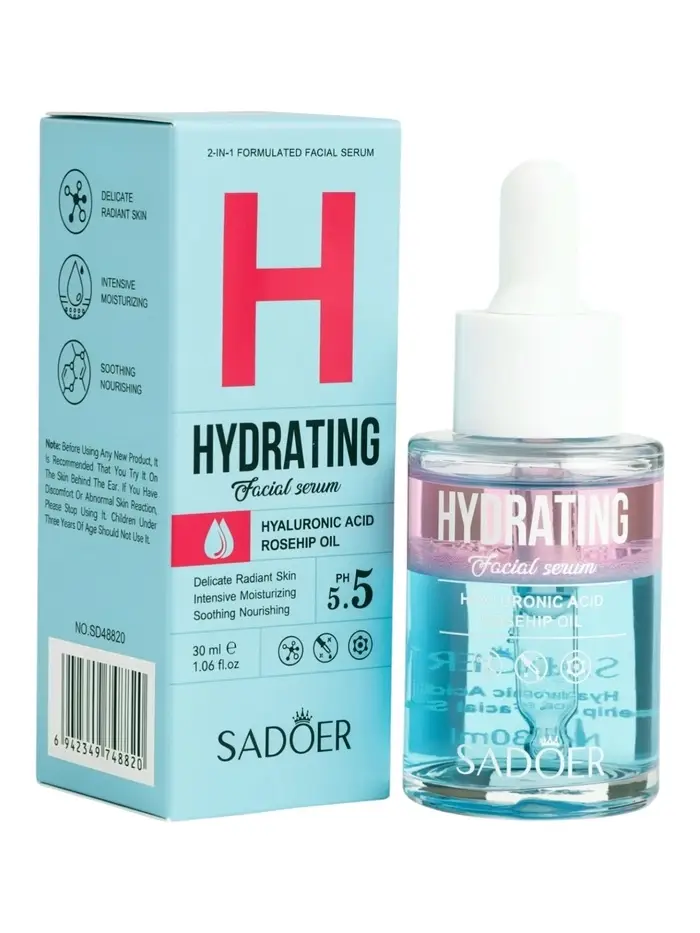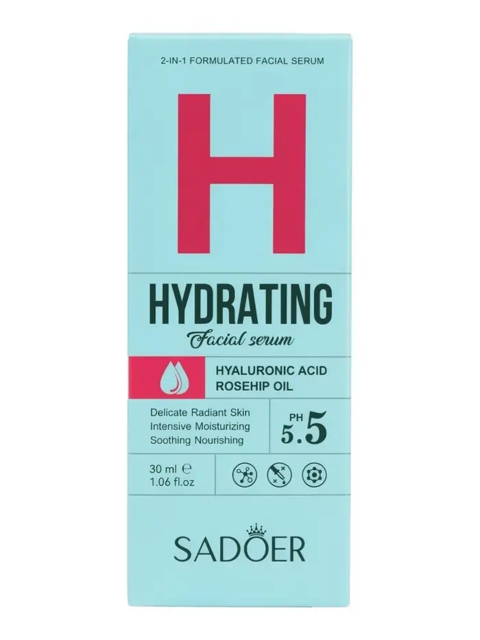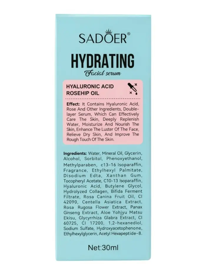 Увлажняющая сыворотка для лица Sadoer с гиалуроновой кислотой, экстракт шиповника, 30 мл