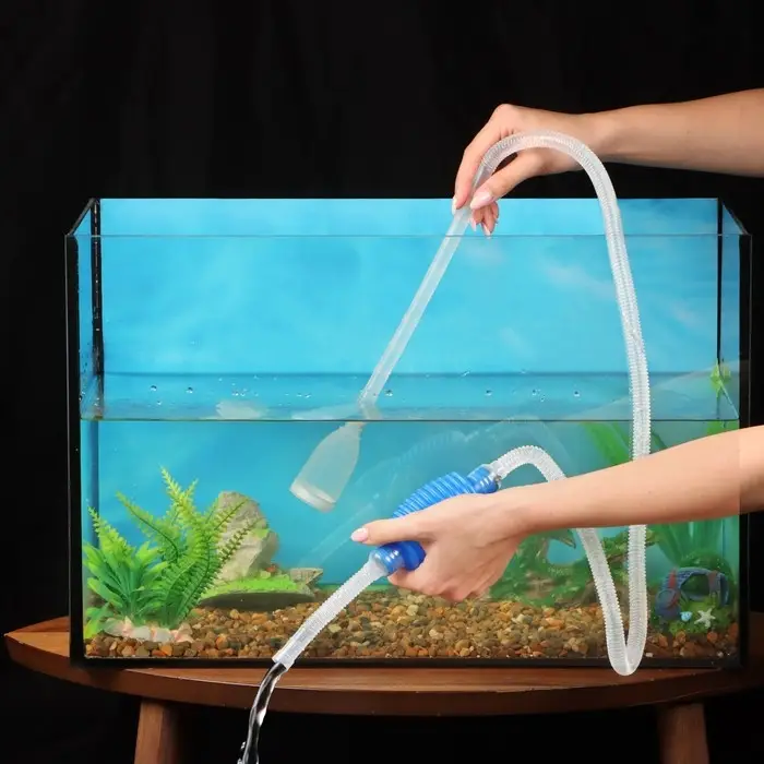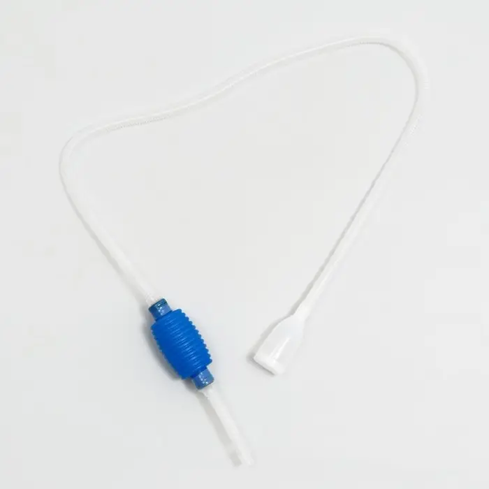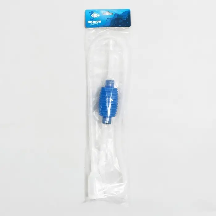 Аквариумный сифон удобен для ручного использования и обладает большой силой всасывания. Выполнен из пластика. У входного отверстия имеется сито внутри, которое собирает остатки корма и мусор с грунта. Чистит грунт и воду одновременно.