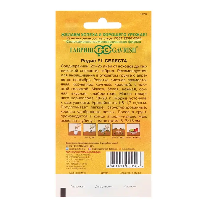 Семена редиса «Селеста» идеально подходят для тех, кто хочет вырастить вкусные и сочные корнеплоды у себя на участке с минимальными усилиями. Порадуйте своих близких свежими овощами и откройте для себя все преимущества гибридного редиса!