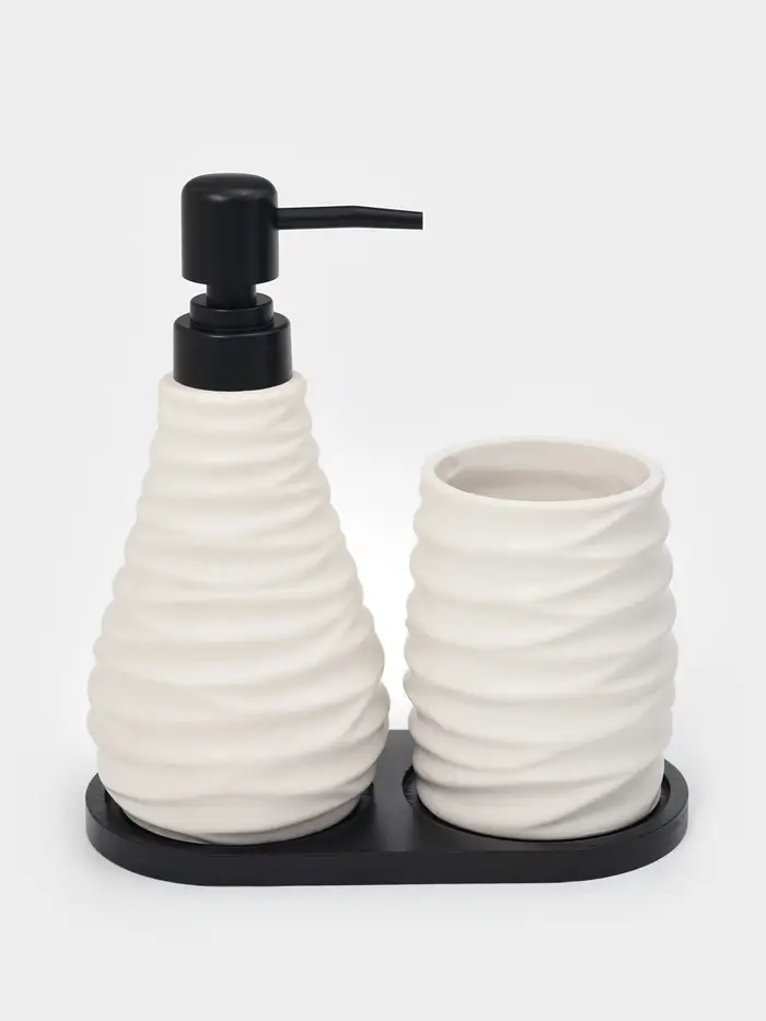 Набор для ванной "Sea Salt", 3 предмета (дозатор для мыла, стакан, подставка), цвет белый