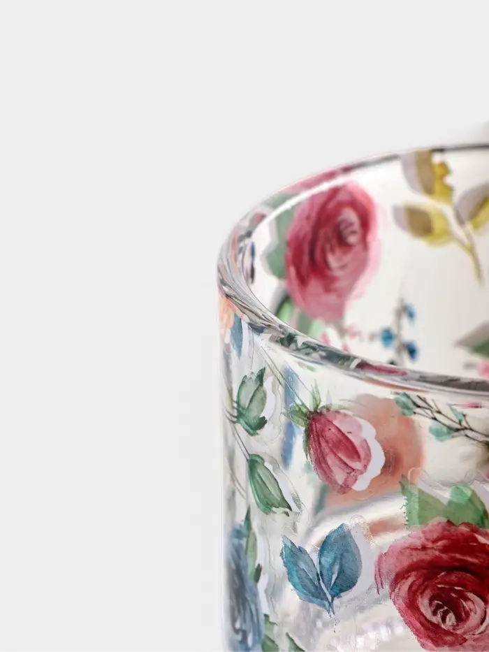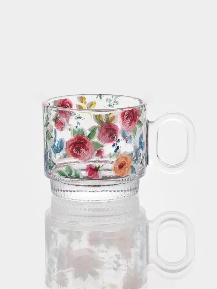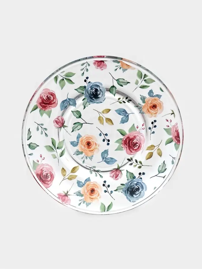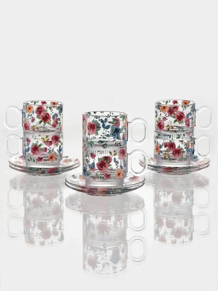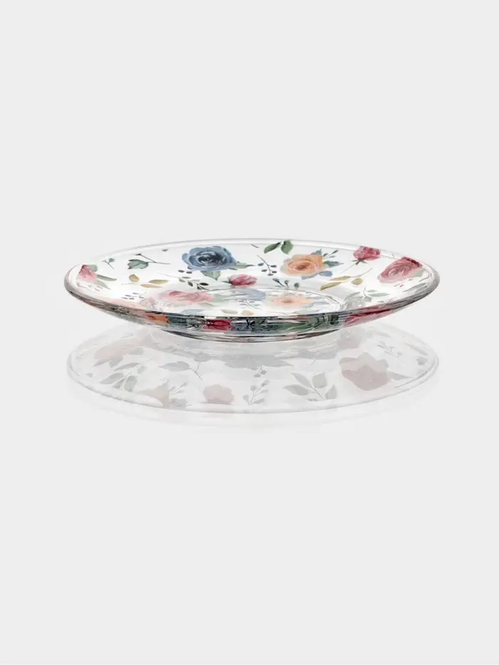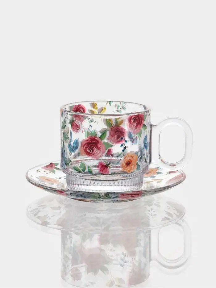 Стеклянный сервиз требует бережного обращения. Чтобы сохранить идеальную прозрачность и яркость рисунка, мойте его вручную тёплой водой.