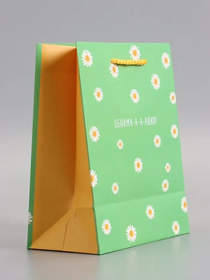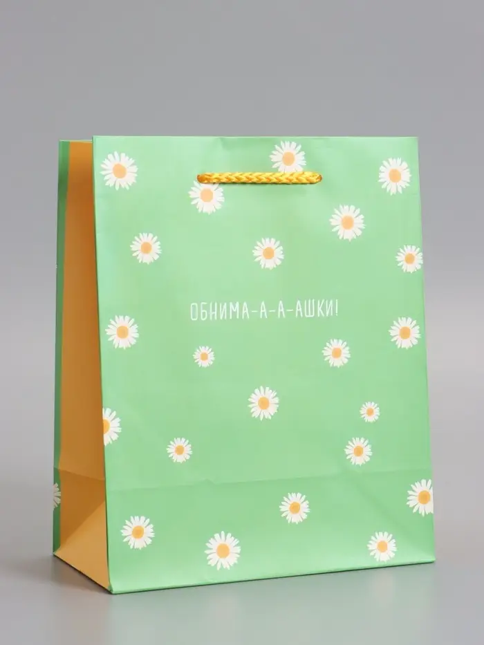Пакет подарочный "Ромашки - обнимашки" ламинированный 18 х 22,3 х 10 см