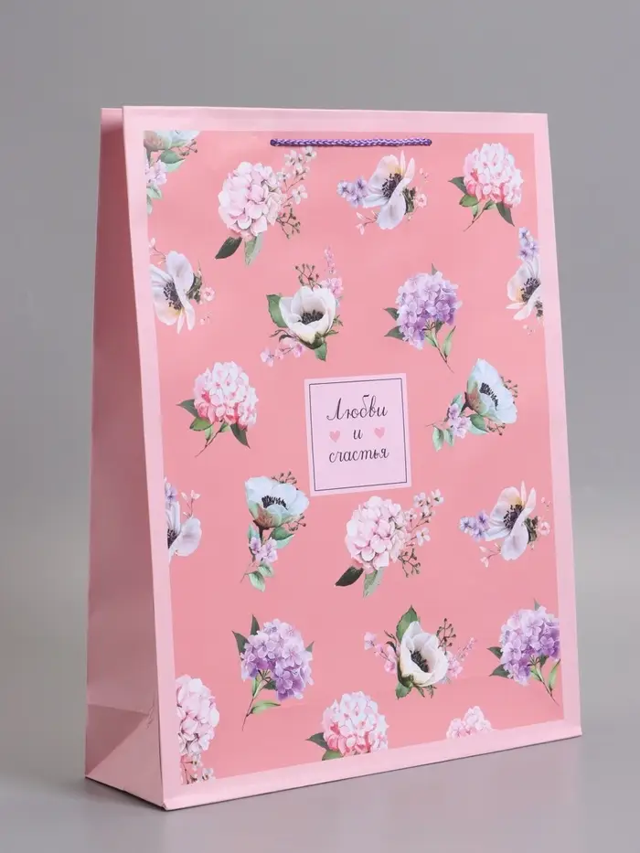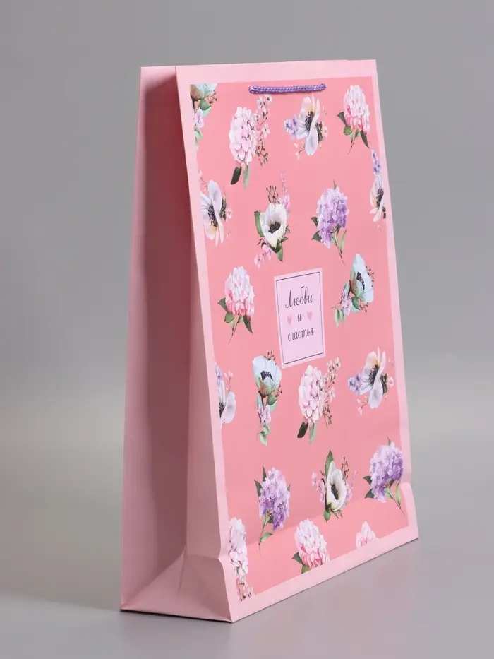 Пакет подарочный "Любви и счастья", ламинированный, 33 х 42,5 х 10 см