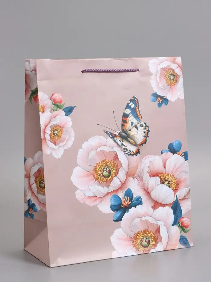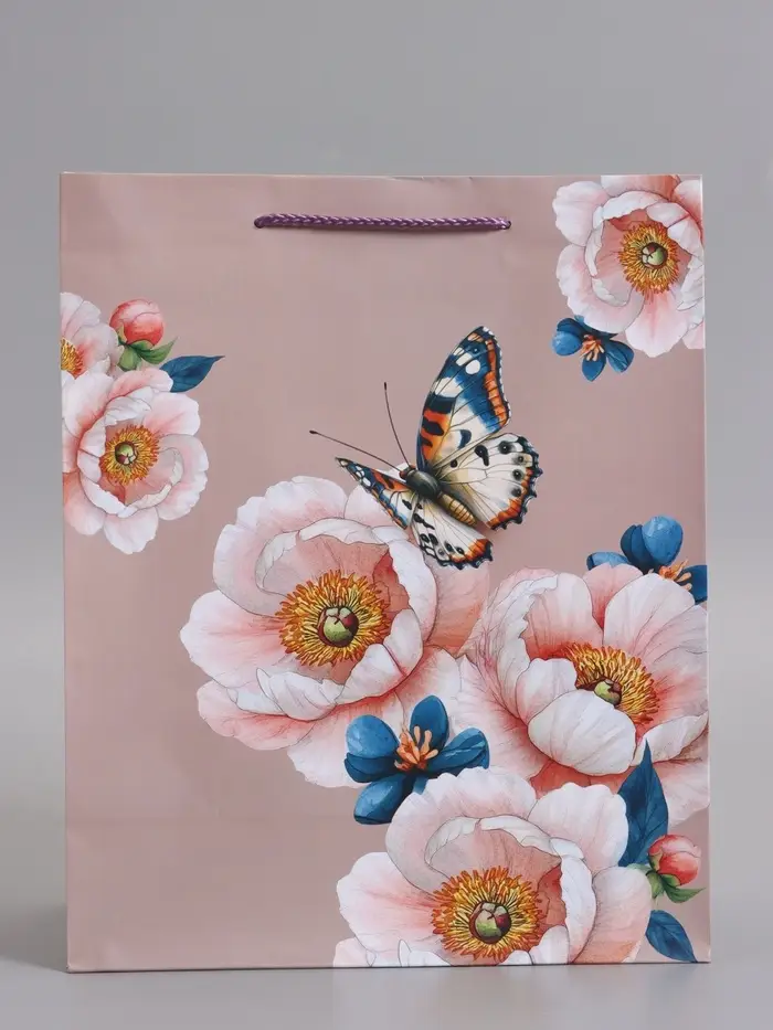 Пакет подарочный ламинированный "Бабочка" 26 х 12 х 32 см