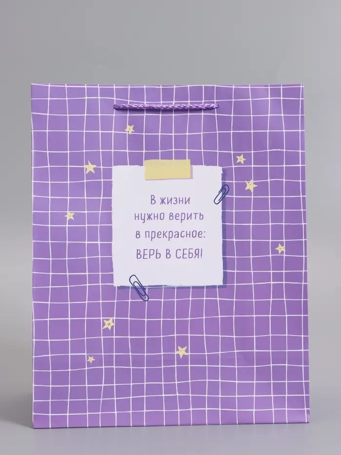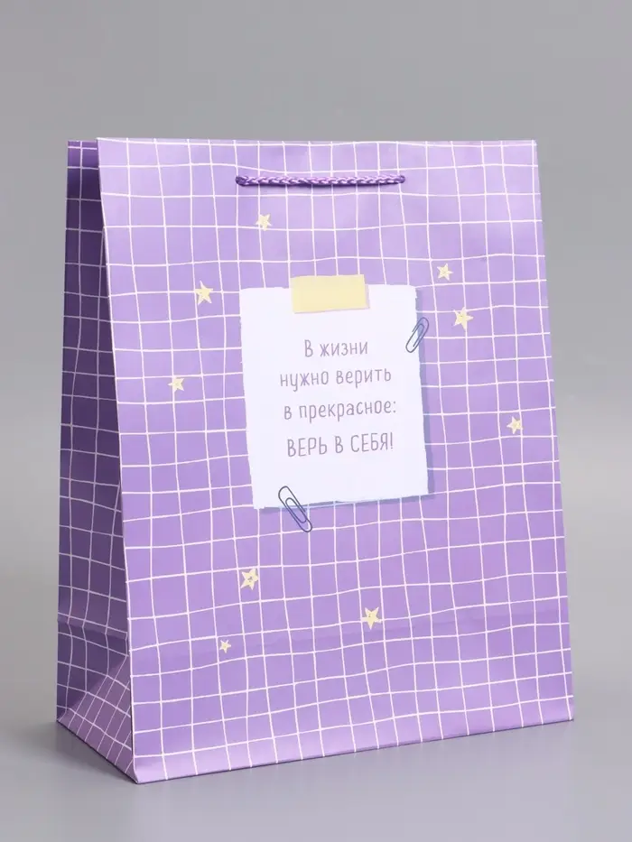 Пакет подарочный "Верь в себя" ламинированный 26 х 12 х 32 см