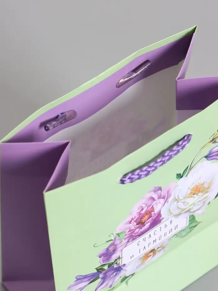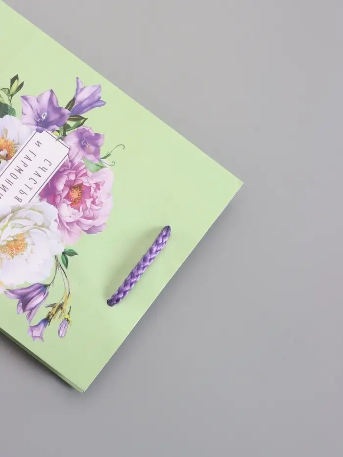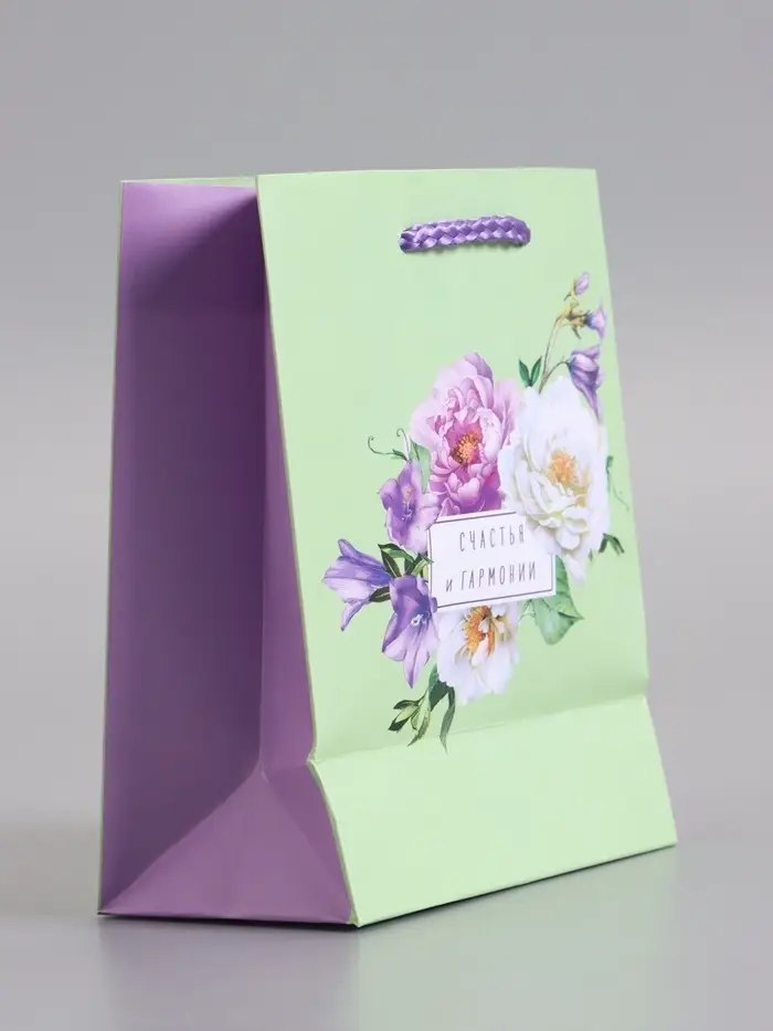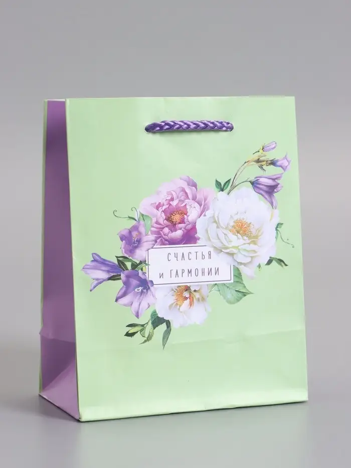 Пакет подарочный ламинированый "Счастья и гармонии" 11,5 х 14,5 х 6,5 см