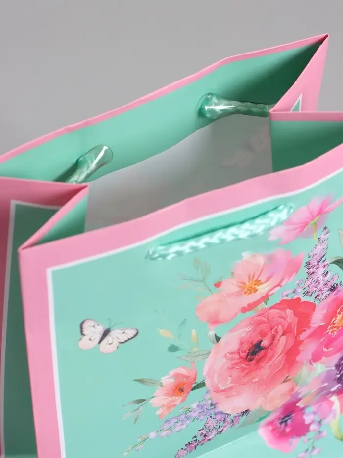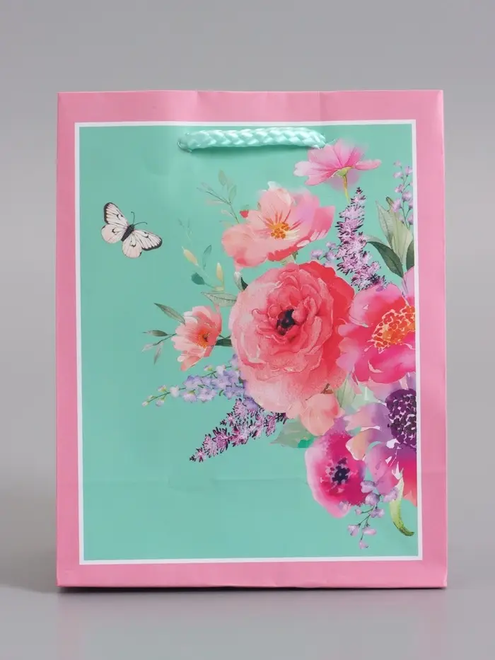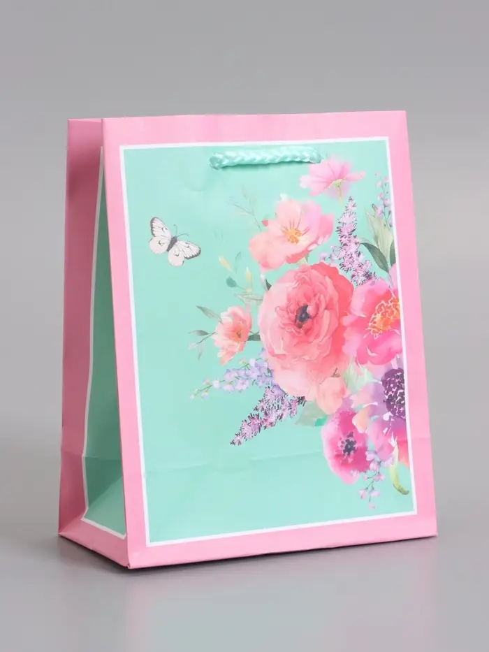 Пакет подарочный ламинированый "Цветочный подарок" 11,5 х 14,5 х 6,5 см