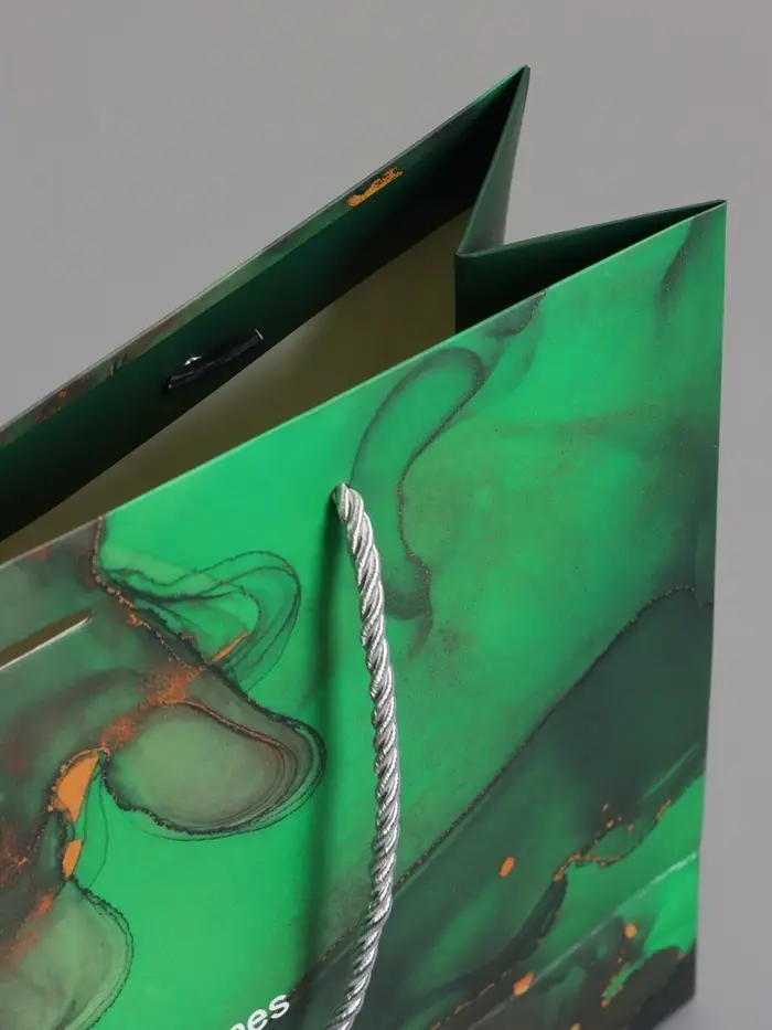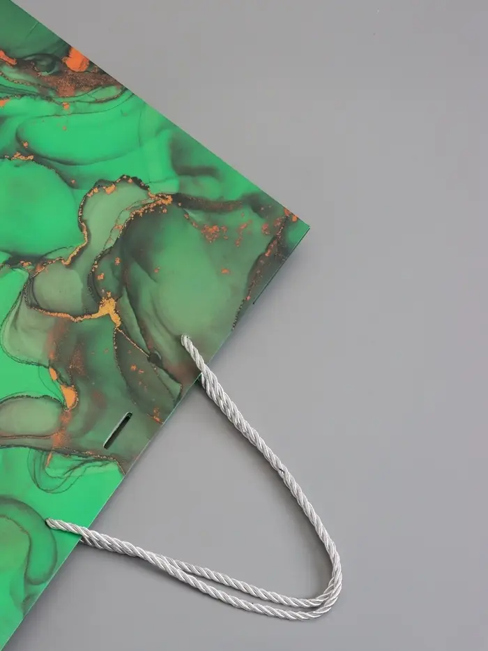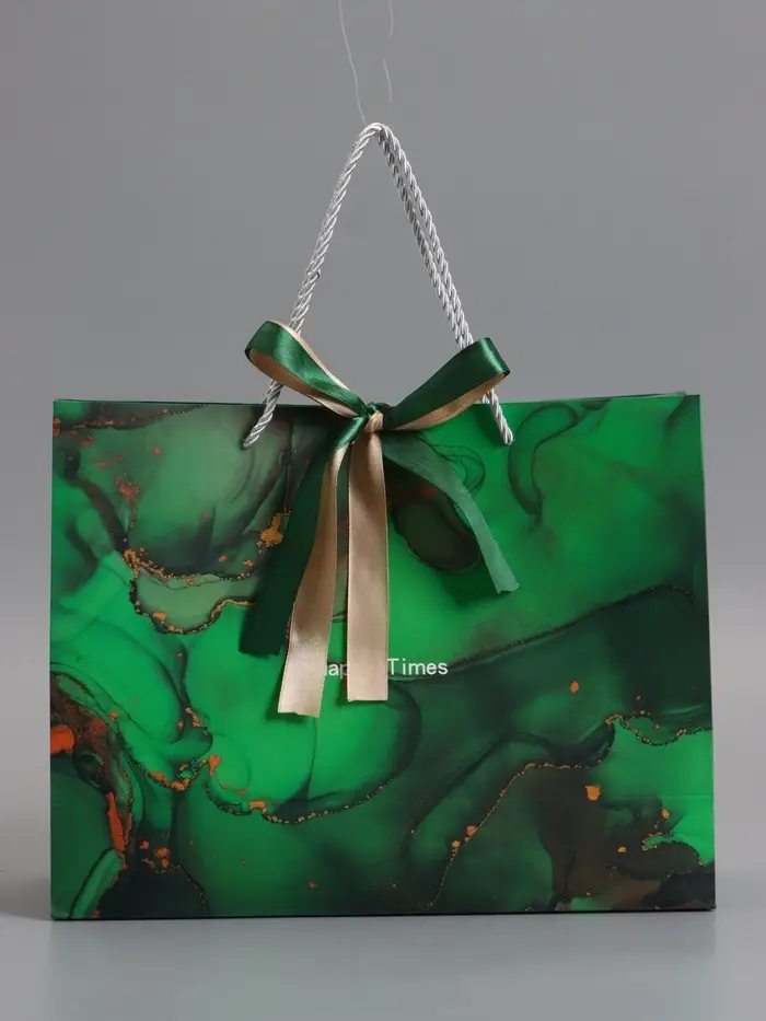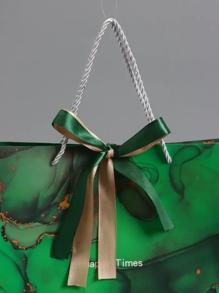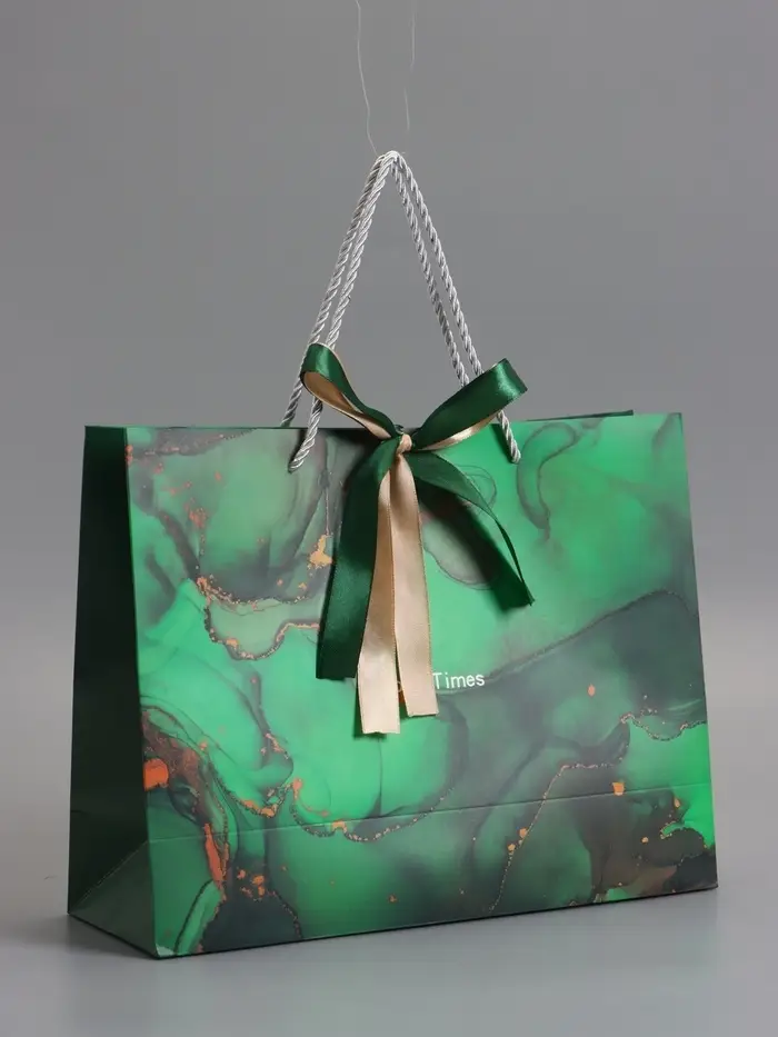 Пакет подарочный "Мрамор", зеленый с бантиком, 32 х 25 х 11 см