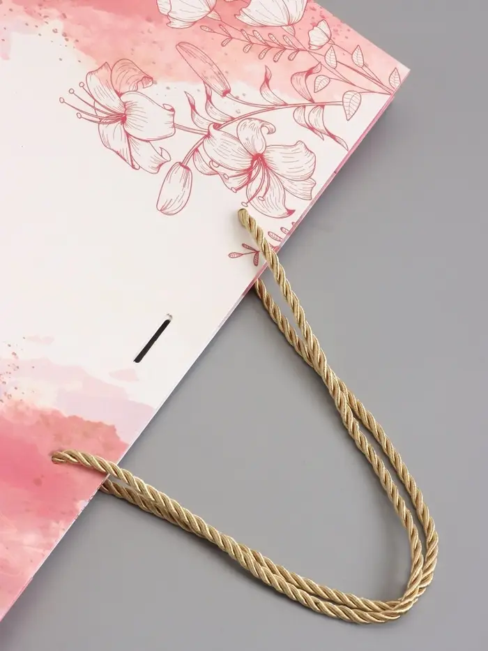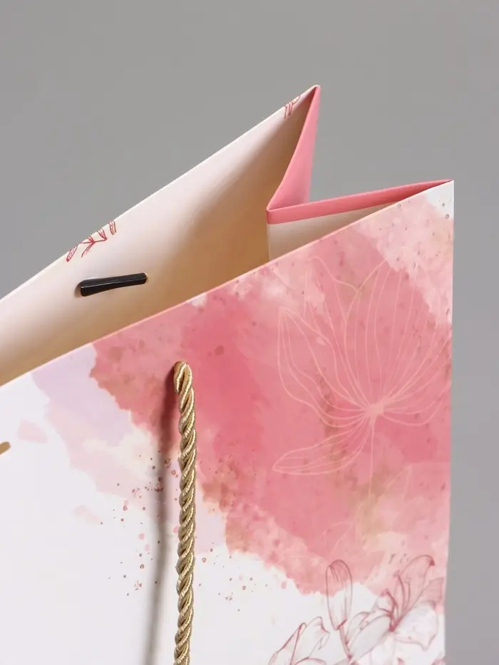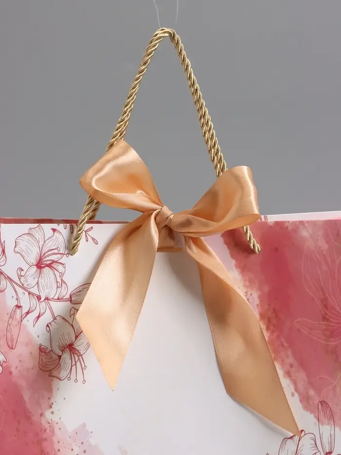 Пакет подарочный "Мрамор" , розовый , с бантиком , 32 х 25 х 11 см