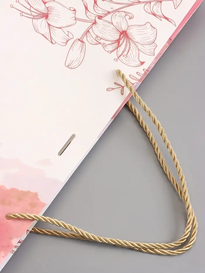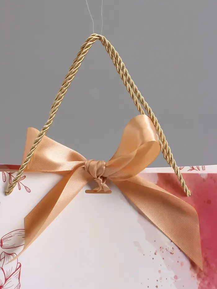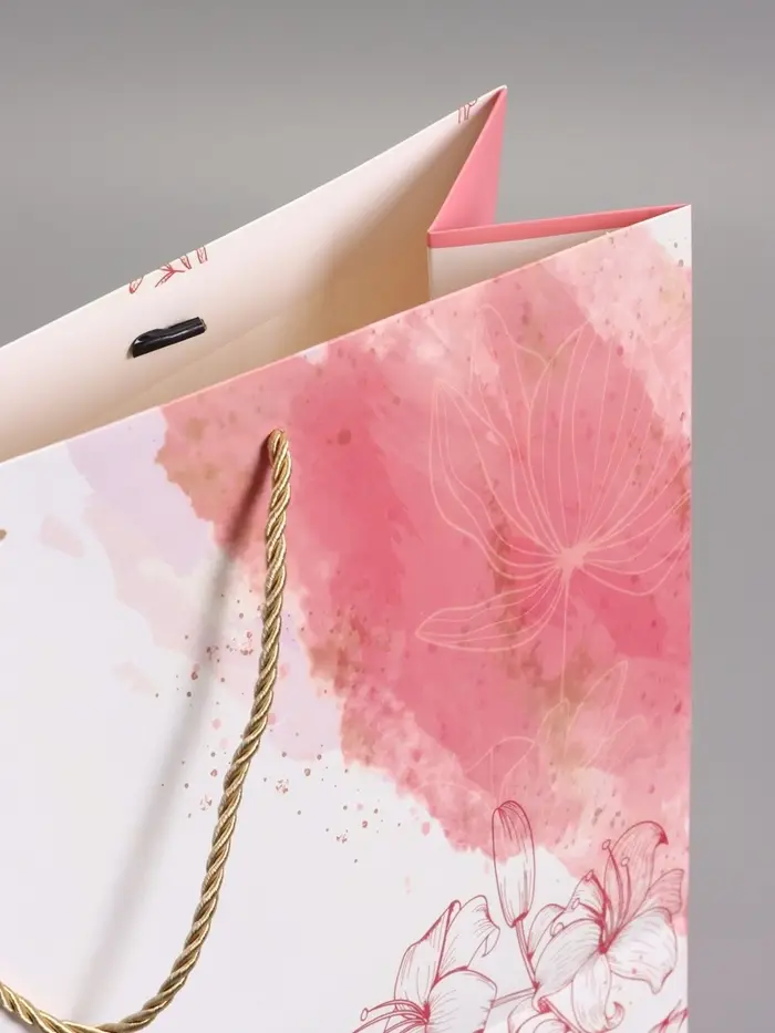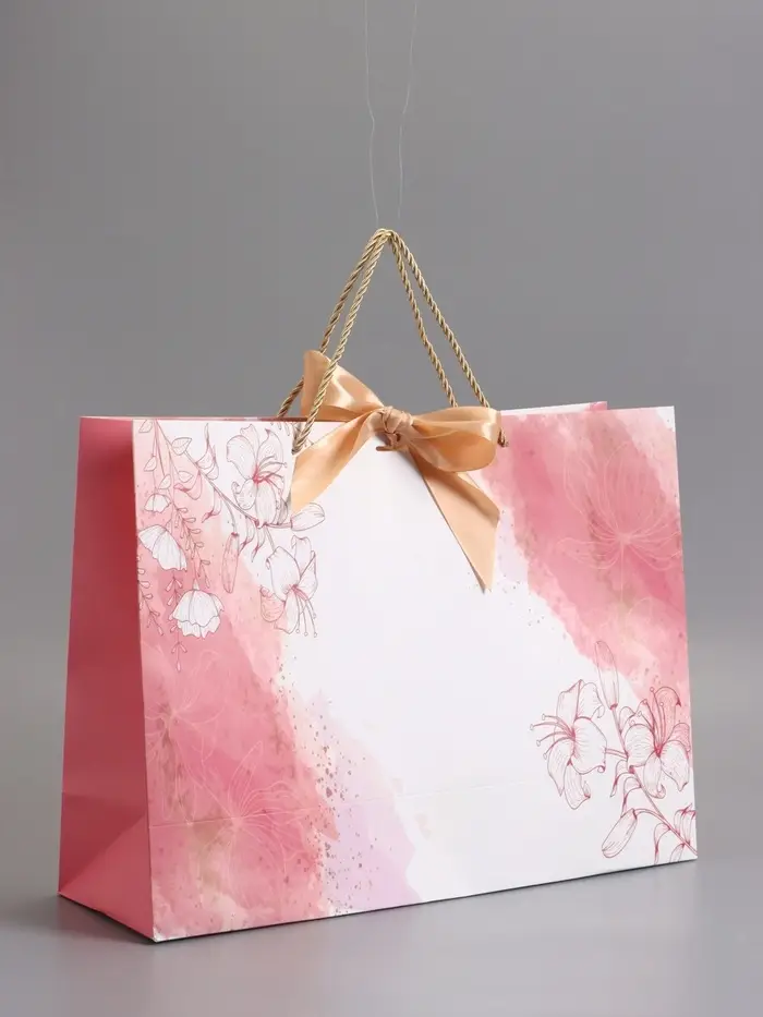 Пакет подарочный "Мрамор" , розовый , с бантиком , 43 х 32 х 14 см