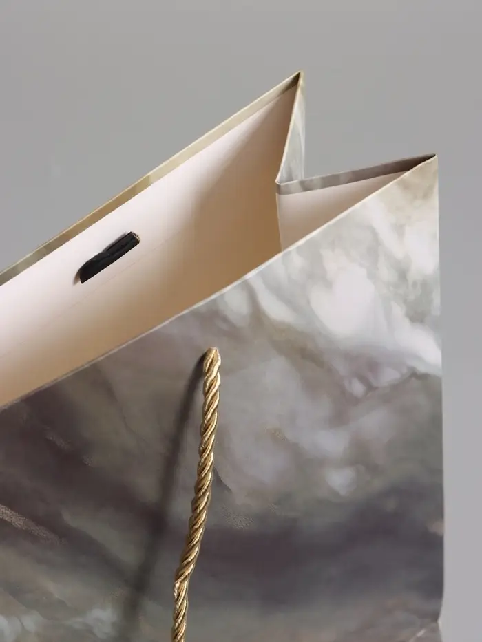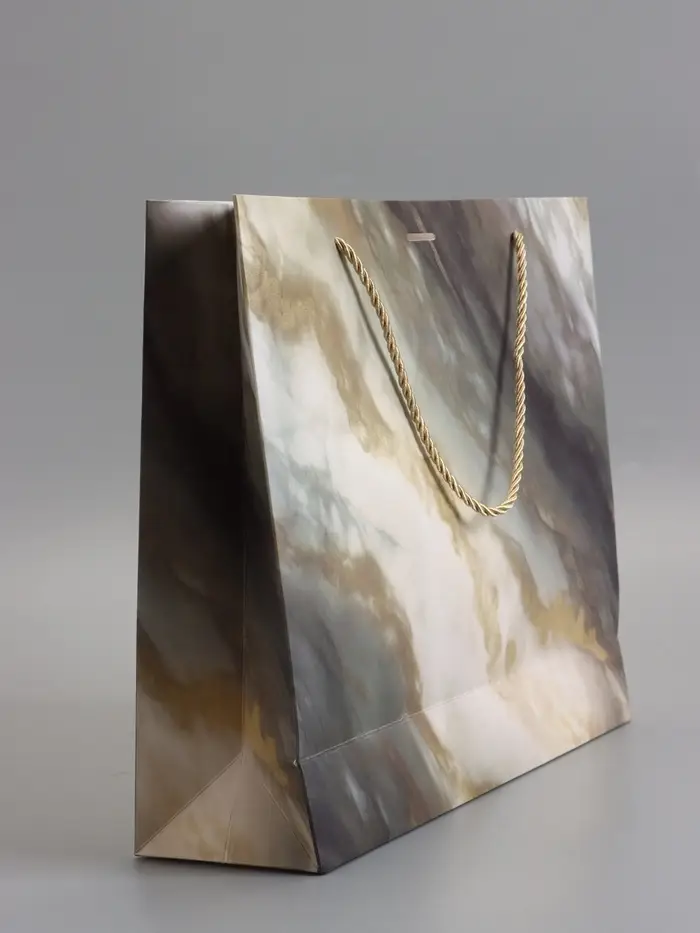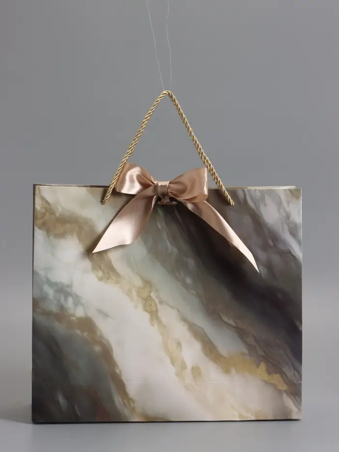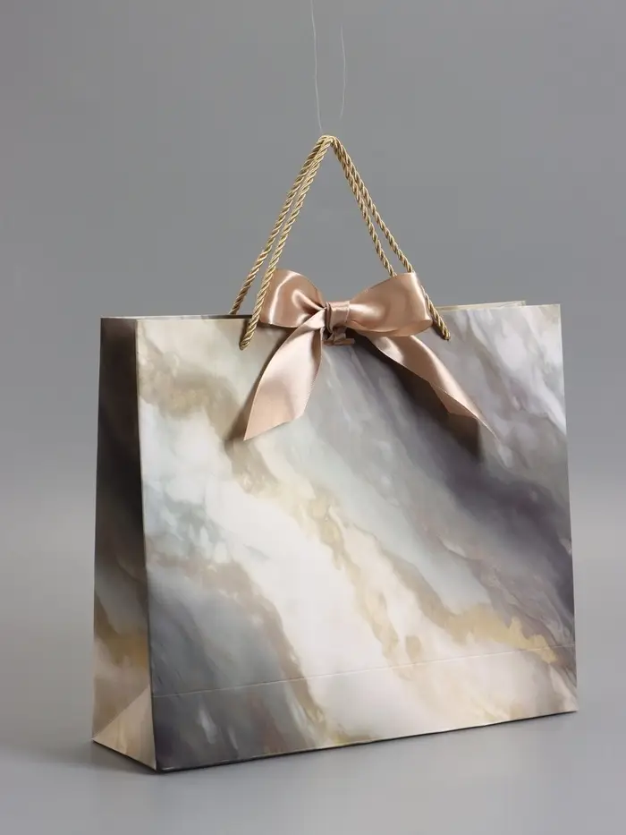 Пакет подарочный "Мрамор" , с бантиком , 35 х 30 х 10 см