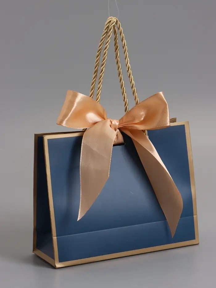 Пакет подарочный, черный , с бантом, 19 х 15 х 7 см
