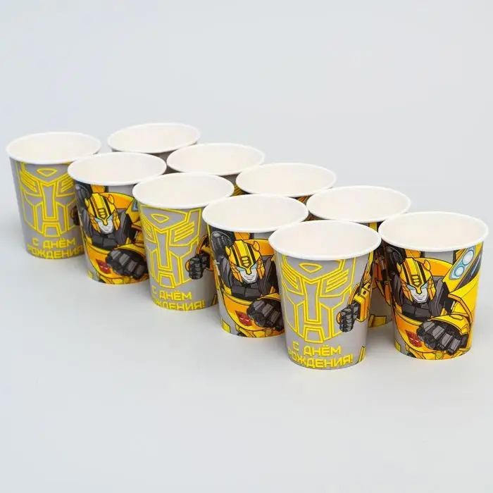 Стакан одноразовый бумажный «С Днем Рождения», 250 мл, Трансформеры