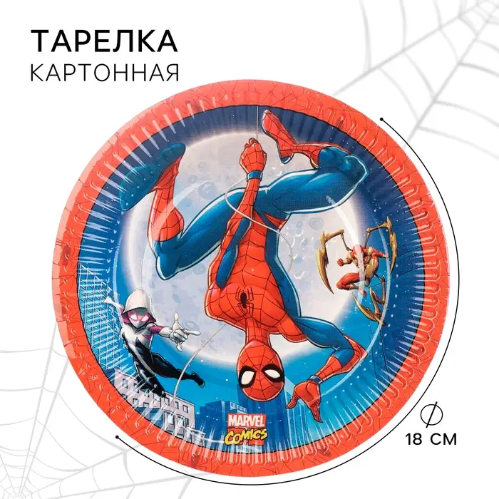 Тарелка бумажная одноразовая «С Днем Рождения!», 18 см, Человек-паук