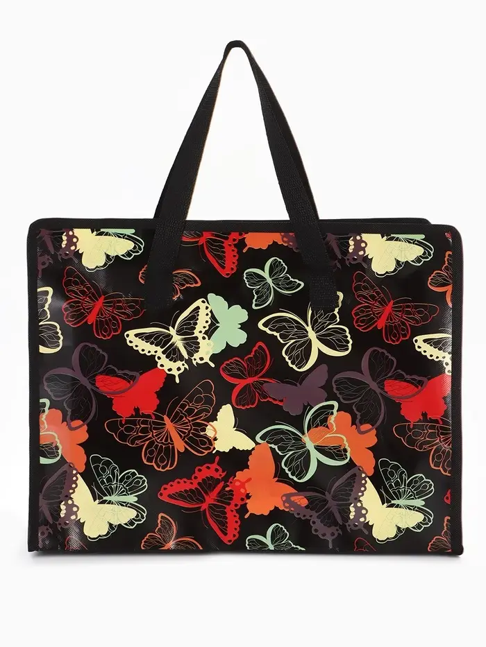 Сумка хозяйственная «Бабочки», на молнии, 40×15×30 см, чёрная