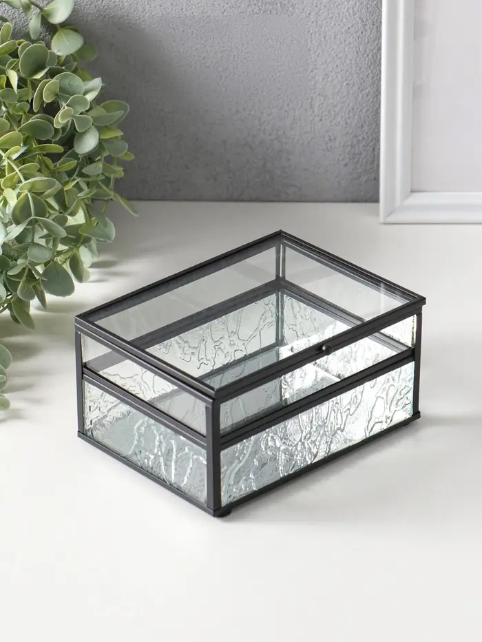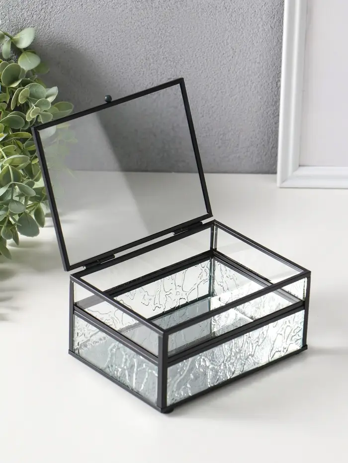Шкатулка стекло с металлическим каркасом "Проталины" прозрачная 11,5х15х7,3 см